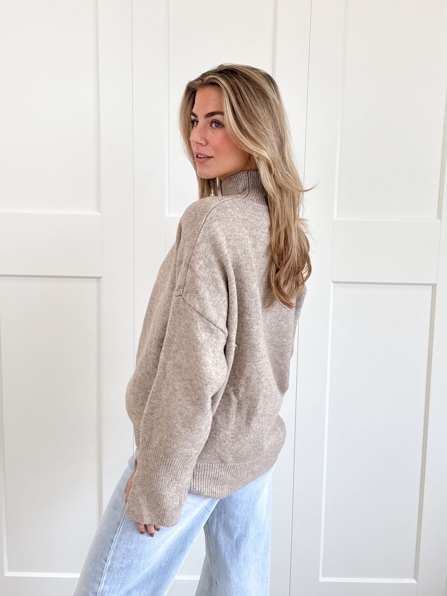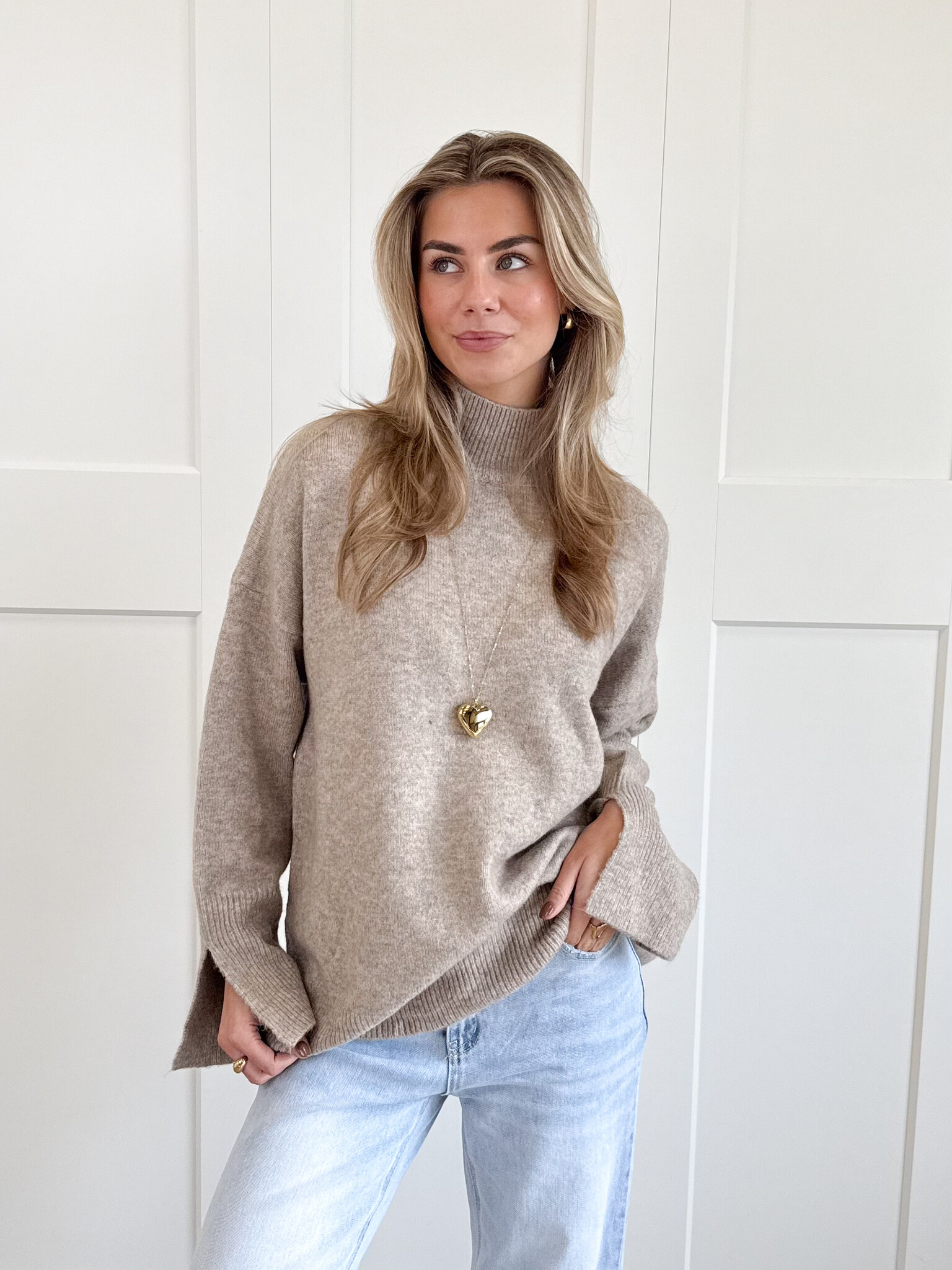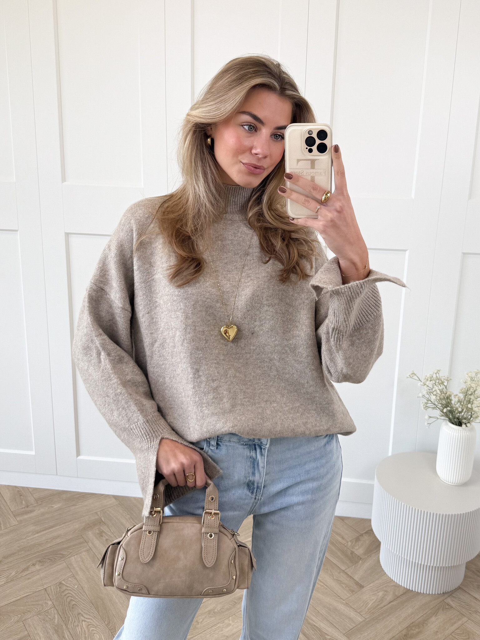 Deze oversized gebreide trui is alles wat je nodig hebt voor de koude dagen. De grove knit voelt zacht aan op je huid, terwijl de hoge hals je lekker warm houdt. De losse pasvorm zorgt voor een nonchalante maar stijlvolle uitstraling. Perfect om te dragen met een jeans voor een casual look of met een rok voor een feminine touch. De trui valt soepel, heeft subtiele details bij de boorden en is gemaakt van een warme, ademende stof. Comfortabel, cozy en super fashionable een echte musthave die je de hele winter wilt dragen!