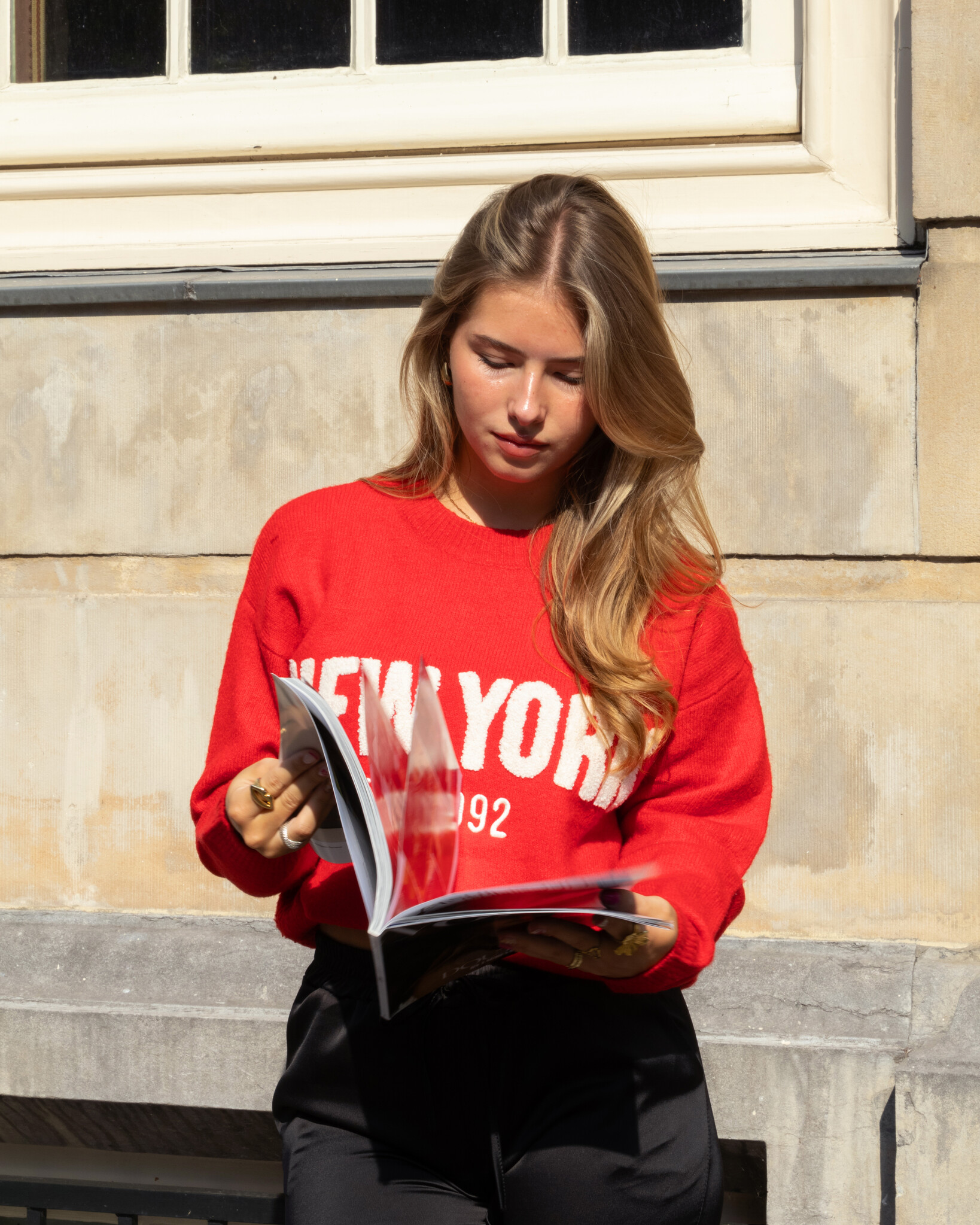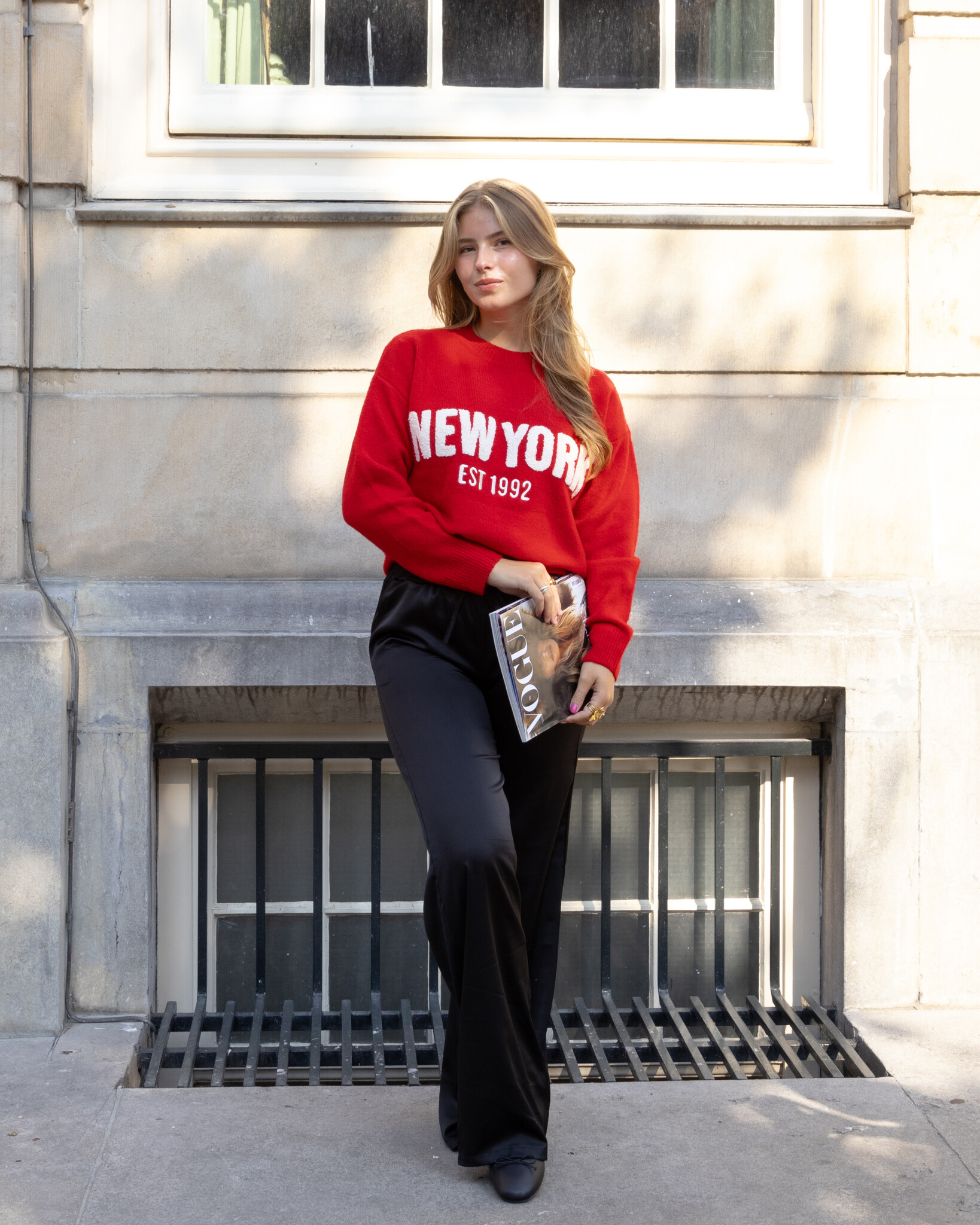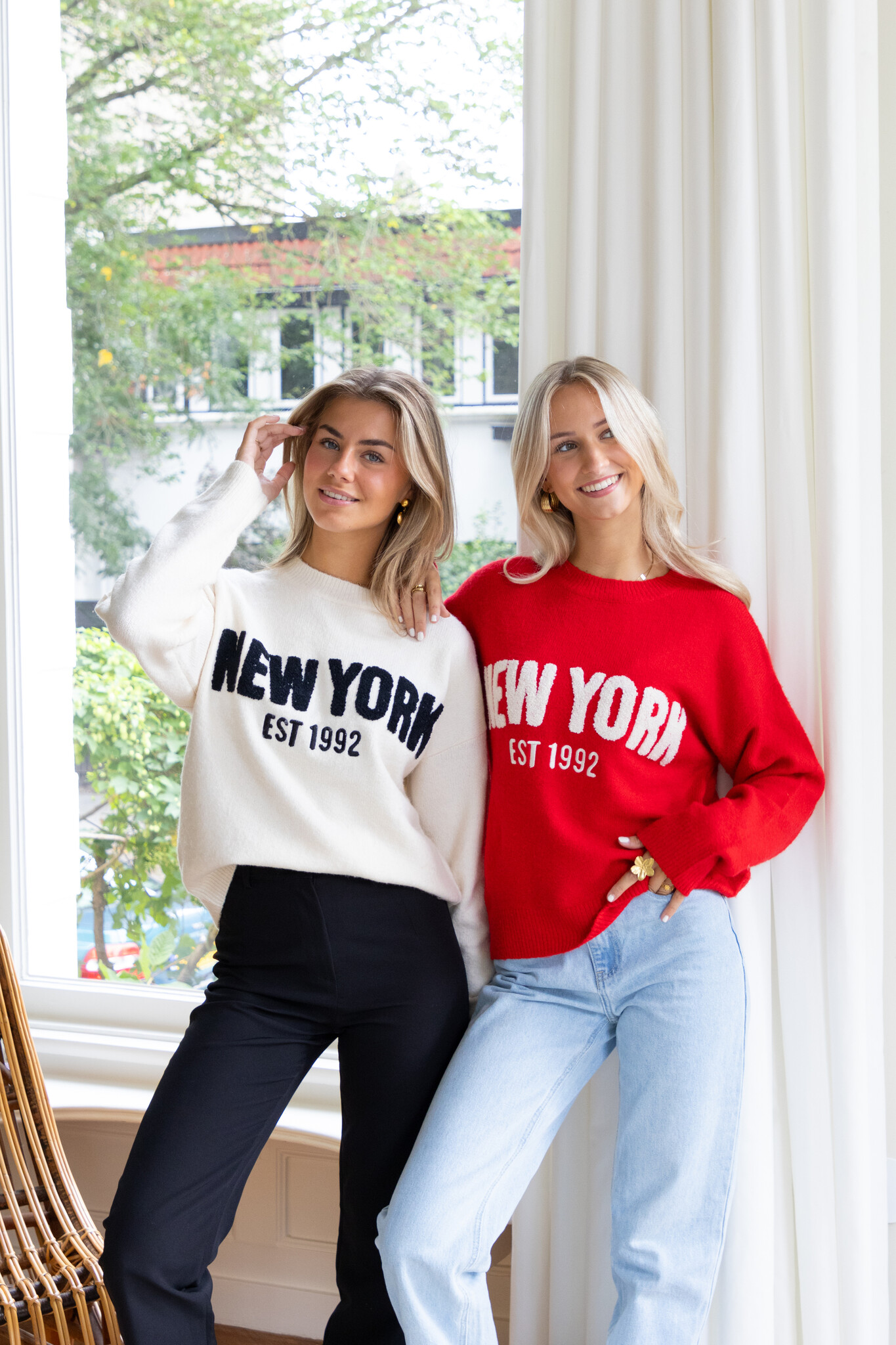 Hoe amazing is deze New York trui Deze prachtige sweater zit heerlijk zacht en warm. De musthave voor de koudere dagen. Een trui die je gemakkelijk overal op kan combineren wil je in je kledingkast hebben. De tekst heeft een andere textuur en zit alleen op de voorkant. Je shopt dit truitje in meerdere kleuren!