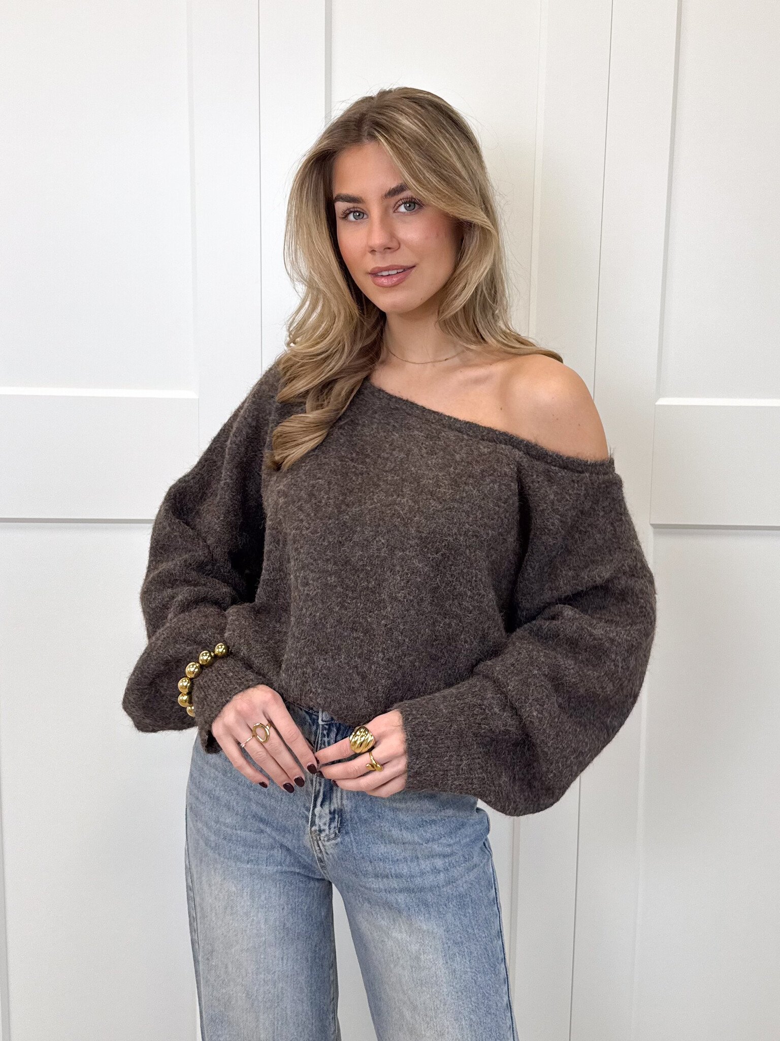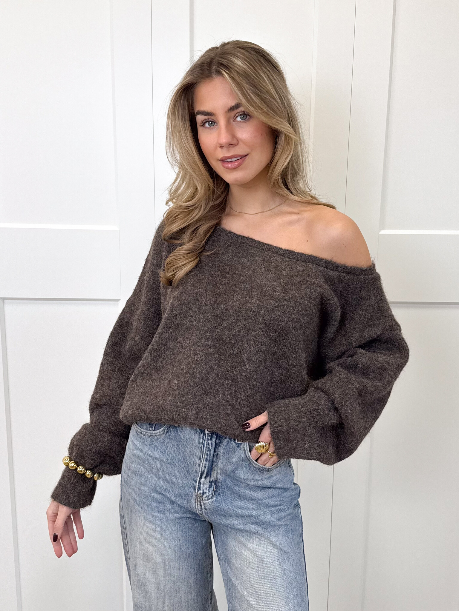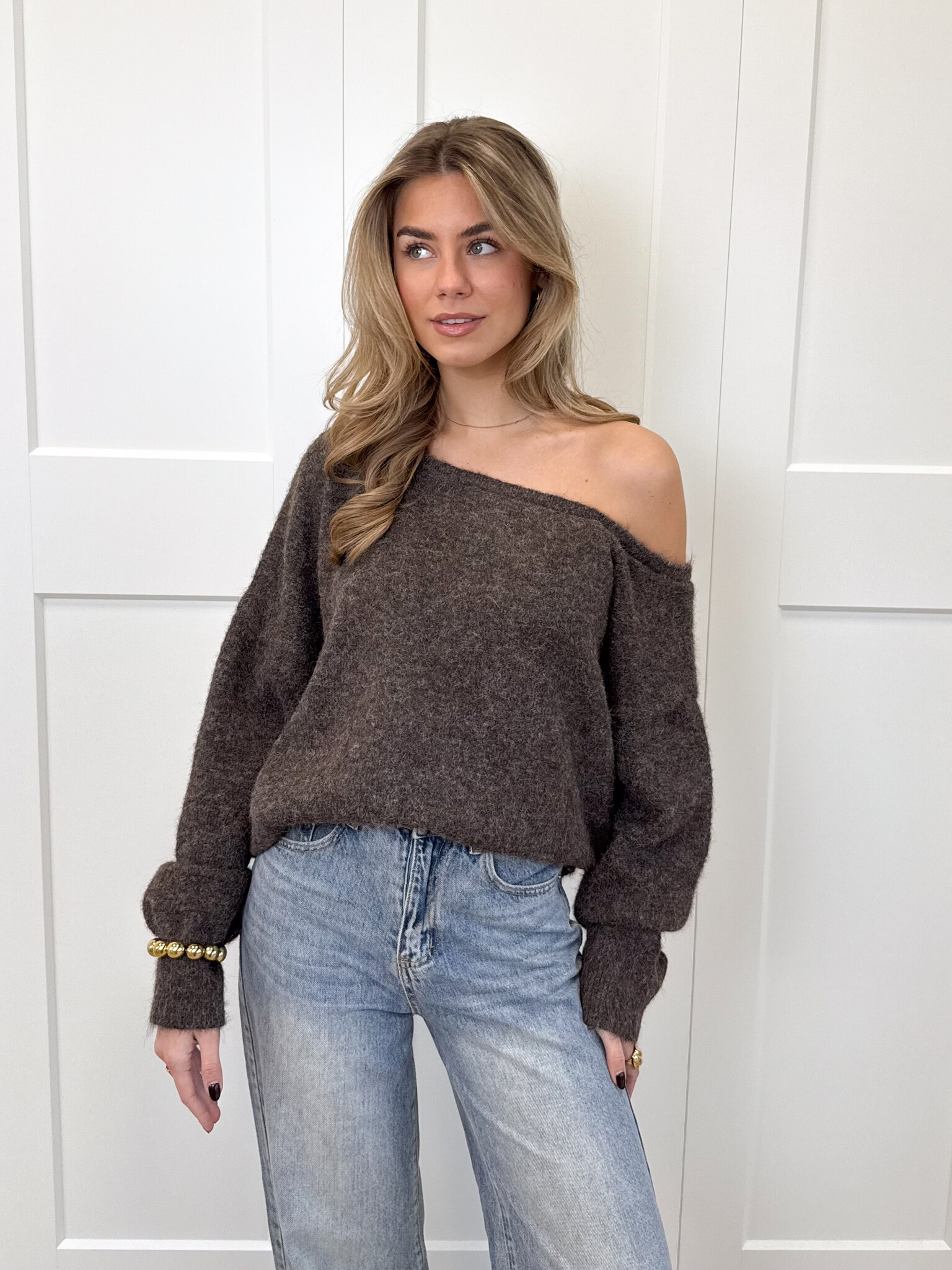 Dit off-shoulder truitje is de perfecte mix van girly en cozy. De zachte, fluffy stof voelt heerlijk warm aan en geeft je meteen een comfy gevoel, terwijl de off-shoulder halslijn zorgt voor een vrouwelijke en elegante uitstraling. De getailleerde pasvorm accentueert mooi je figuur en maakt de trui zowel romantisch als trendy. Ideaal voor een avondje uit, een koffiedate of een stijlvolle winterlook. Combineer met een high waist jeans, rok of pantalon voor een outfit die zowel zacht als fashionable aanvoelt. Een echte must-have voor wie houdt van comfortabele knitwear met een girly twist.