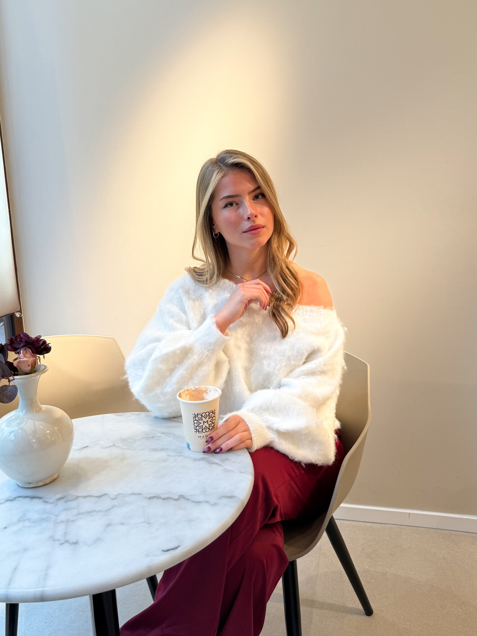 Een sweater die net even anders is: dit fijne zachte model combineert comfort met een vleugje vrouwelijkheid. De soepele stof valt losjes en voelt licht aan, waardoor hij perfect is voor dagen waarop je iets luchtigs wilt dragen maar toch cozy voor de dag wilt komen. Het leukste detail? Je kunt hem off shoulder dragen voor een nonchalante en speelse look.