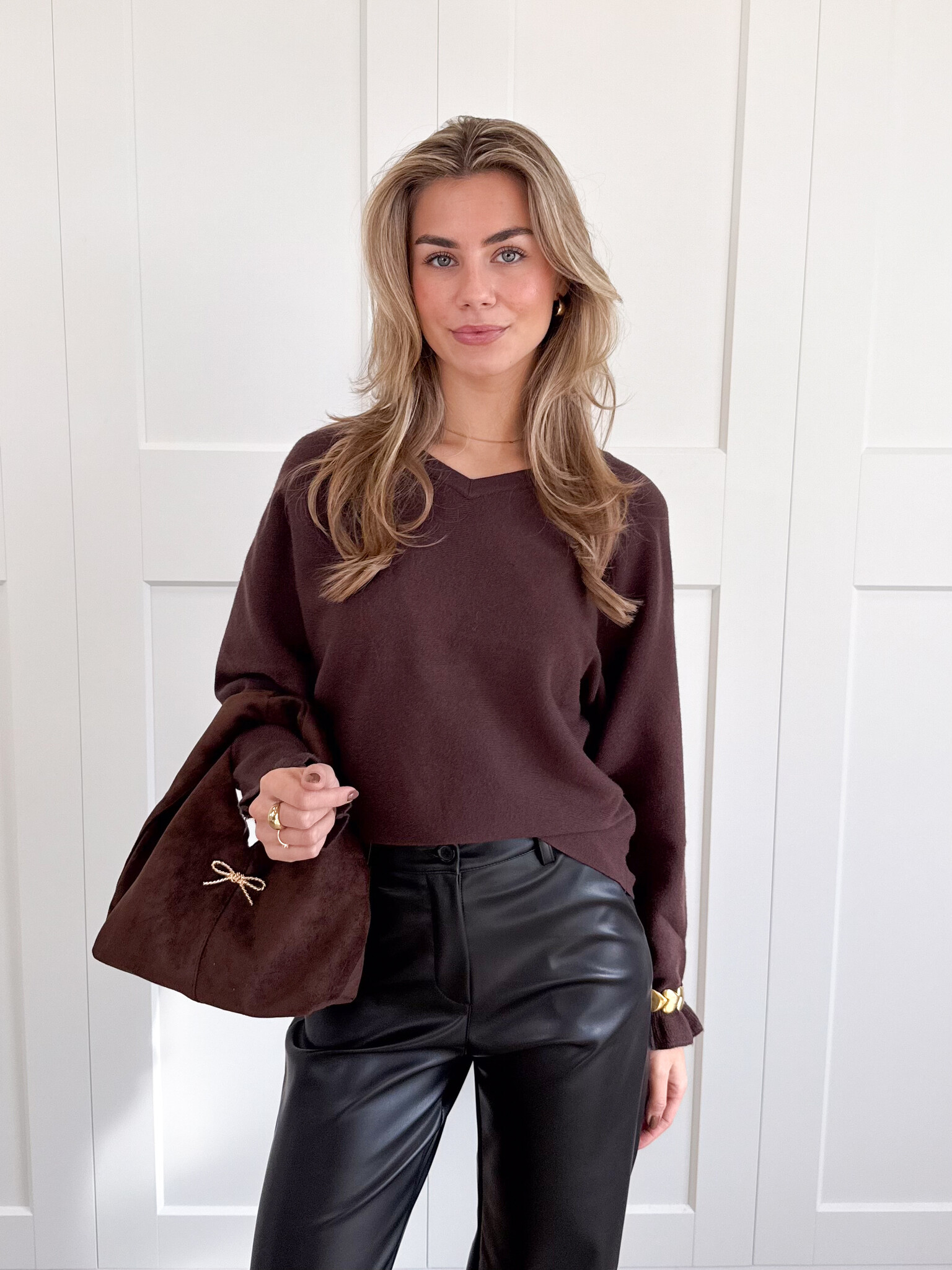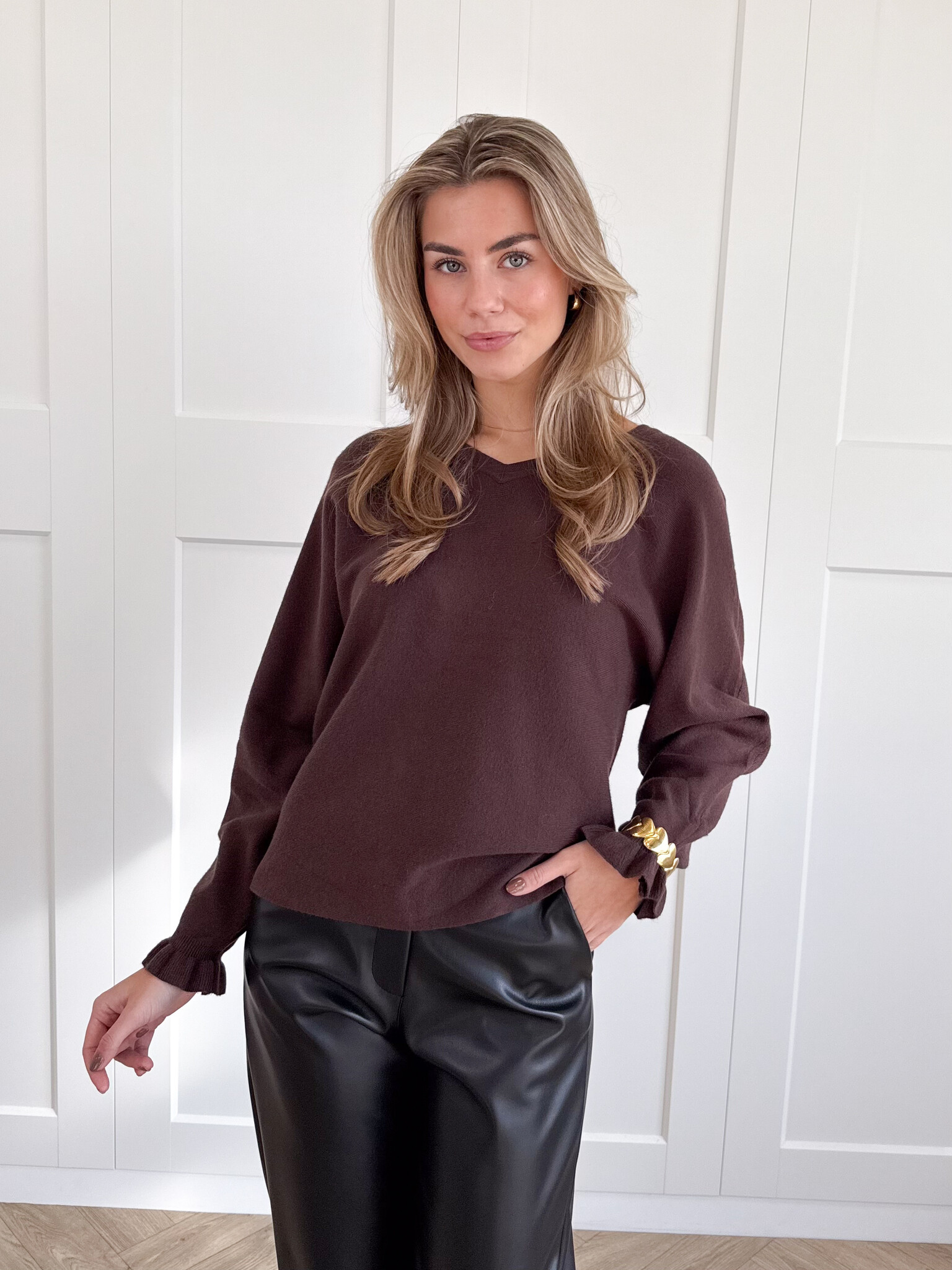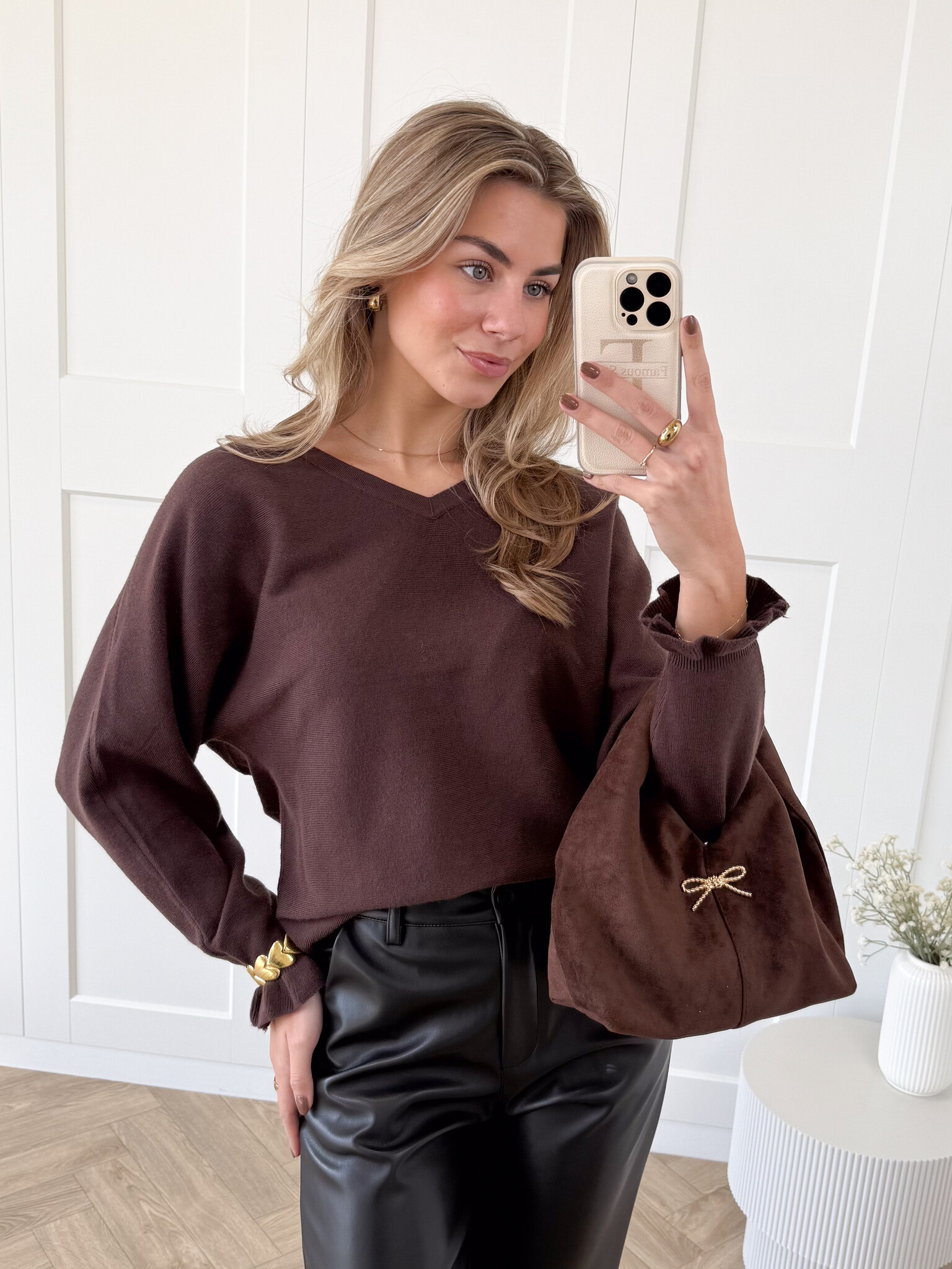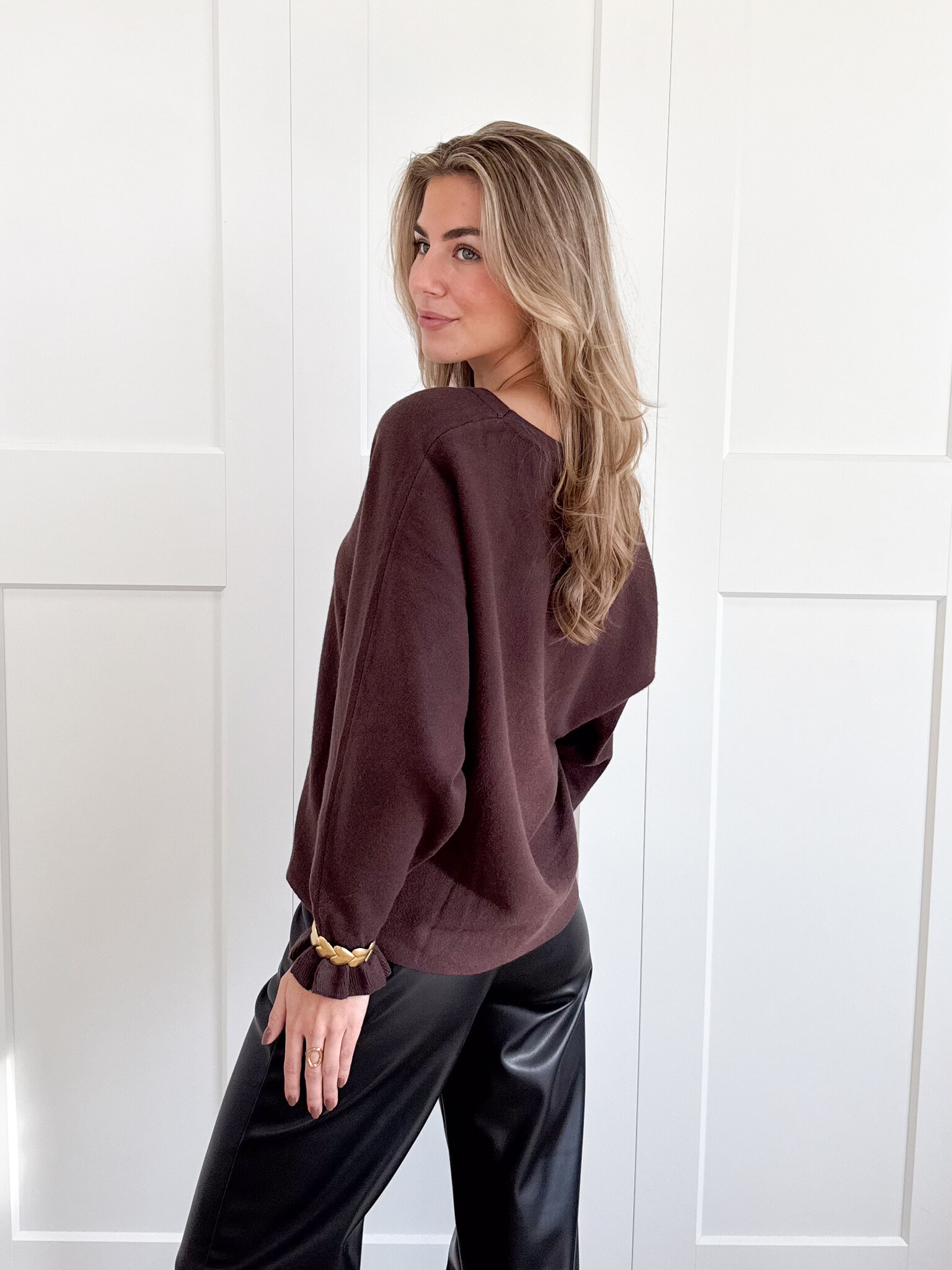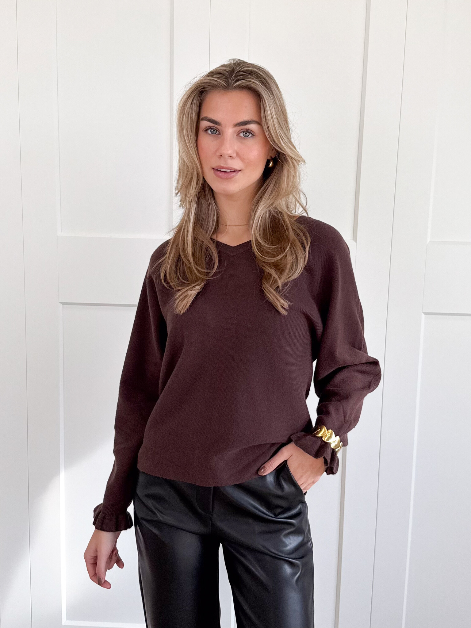 Deze knitted trui is het perfecte voorbeeld van comfy met een vleugje klasse. De zachte knit voelt heerlijk aan op je huid en de subtiele V-hals zorgt voor een vrouwelijke uitstraling. De ruffel bij de mouwen geeft net dat extra detail waardoor je outfit een speelse, girly look krijgt. Combineer haar met je favoriete jeans voor een relaxte dag, of met een maxi rok en laarzen voor een elegante outfit. Dankzij de basic pasvorm kun je haar eindeloos combineren. Van casual coffee dates tot een gezellige avond uit.