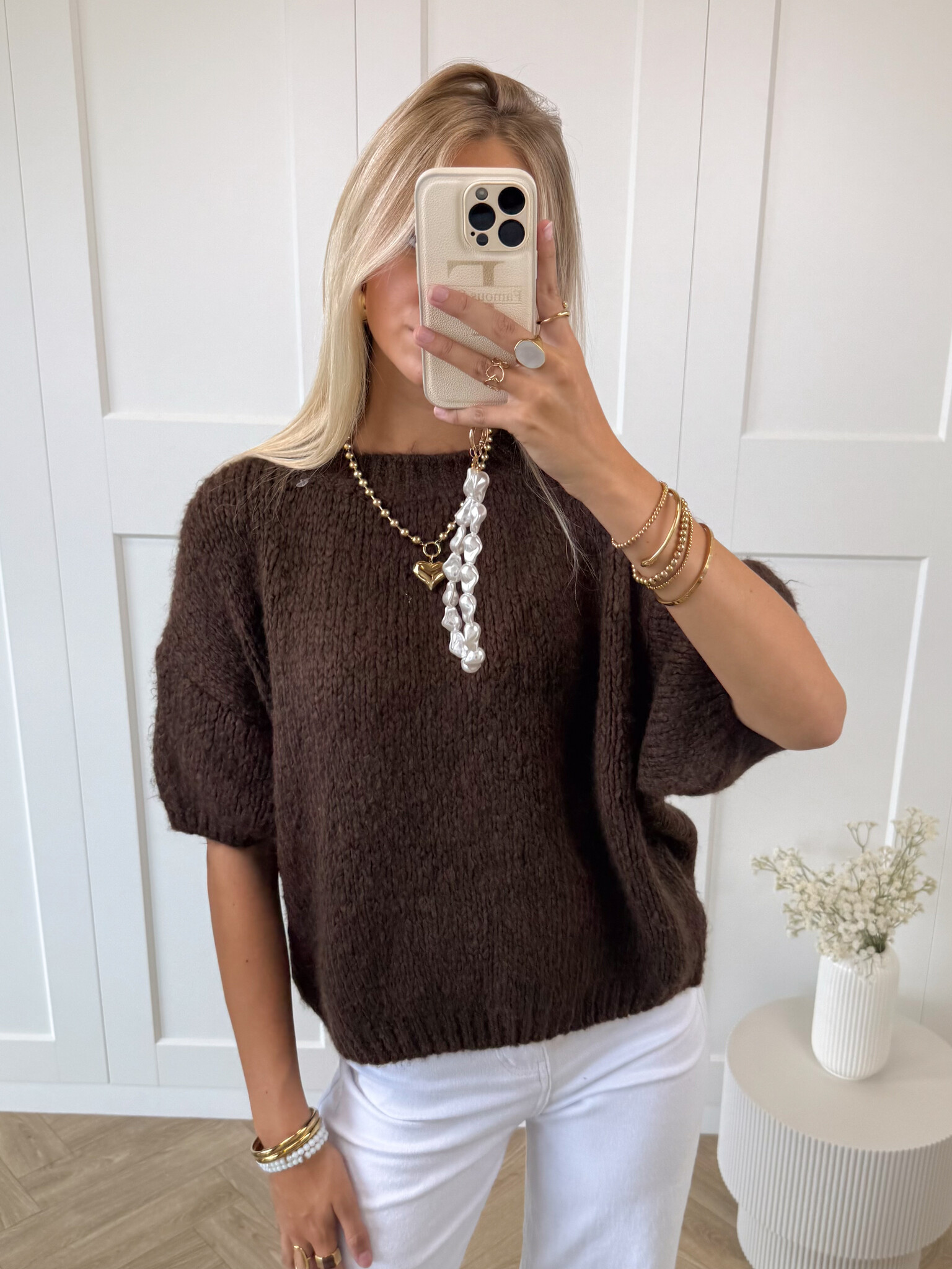 Of je nu onderweg bent naar school, werk of een koffiedate met vriendinnen: dit truitje past bij elke gelegenheid en voelt altijd comfortabel. Het is een tijdloze basic met net dat beetje extra door de combinatie van wol en korte mouwen.