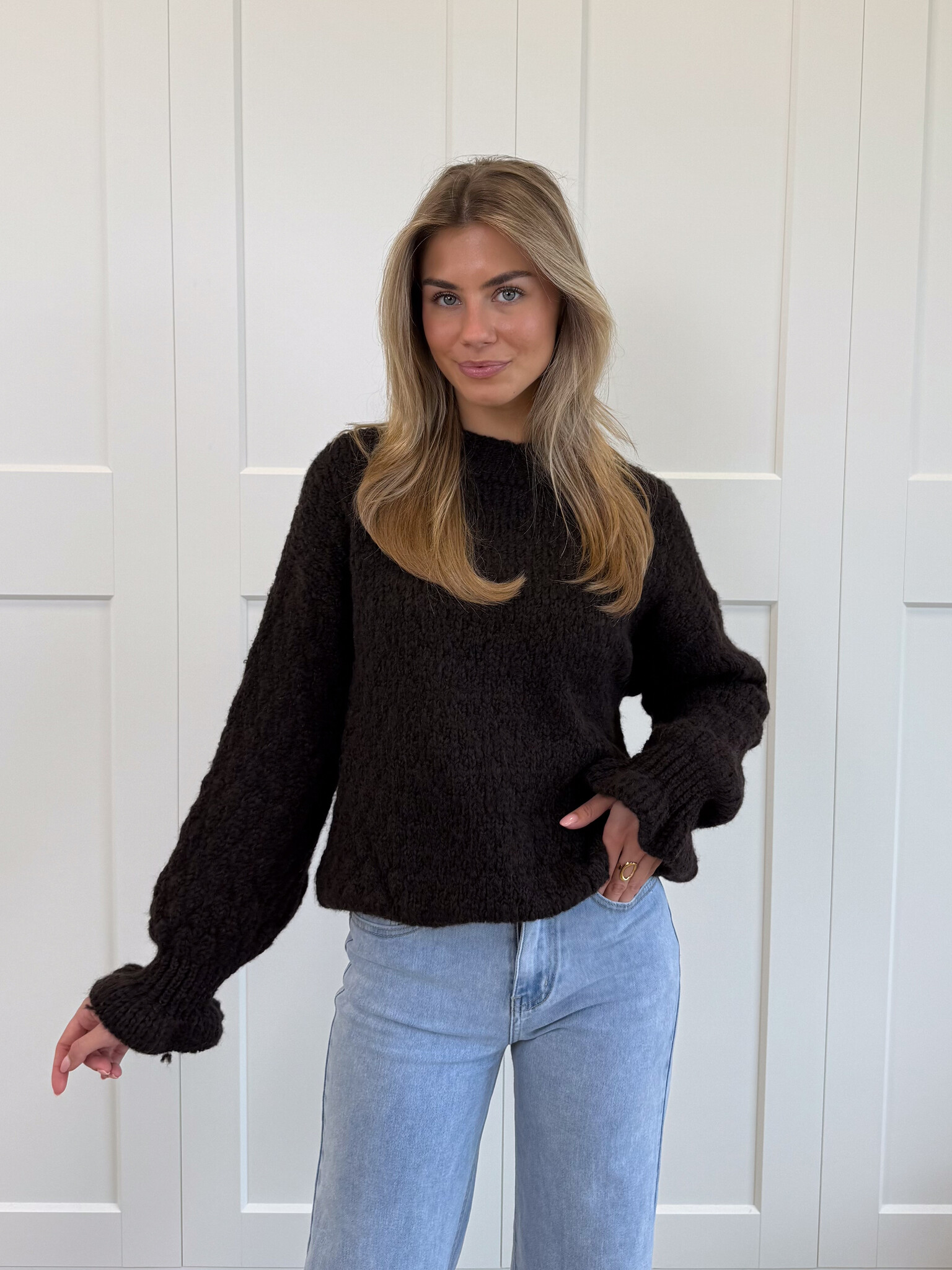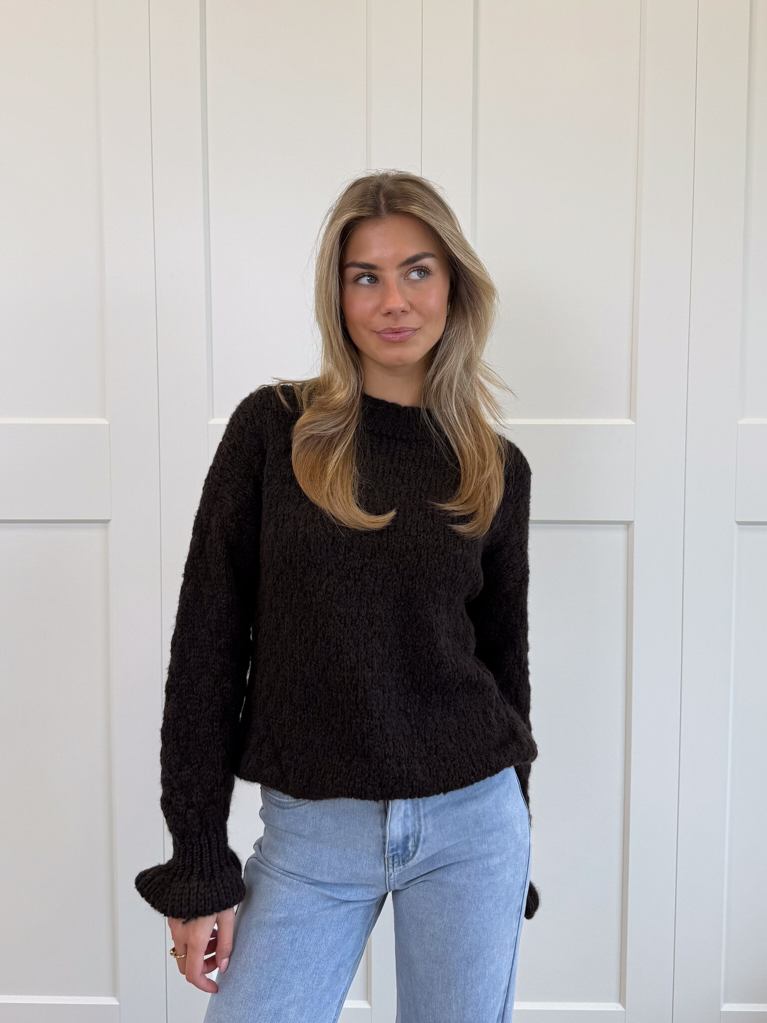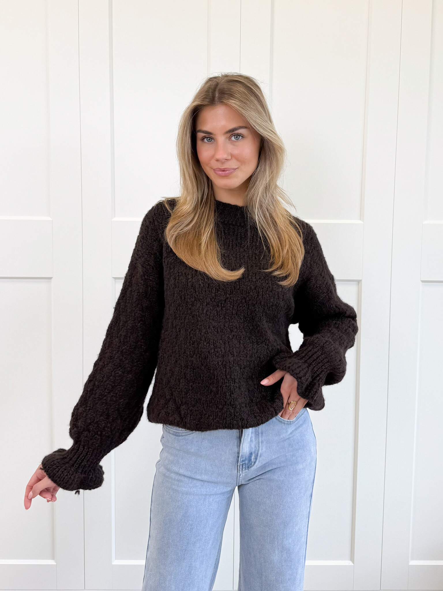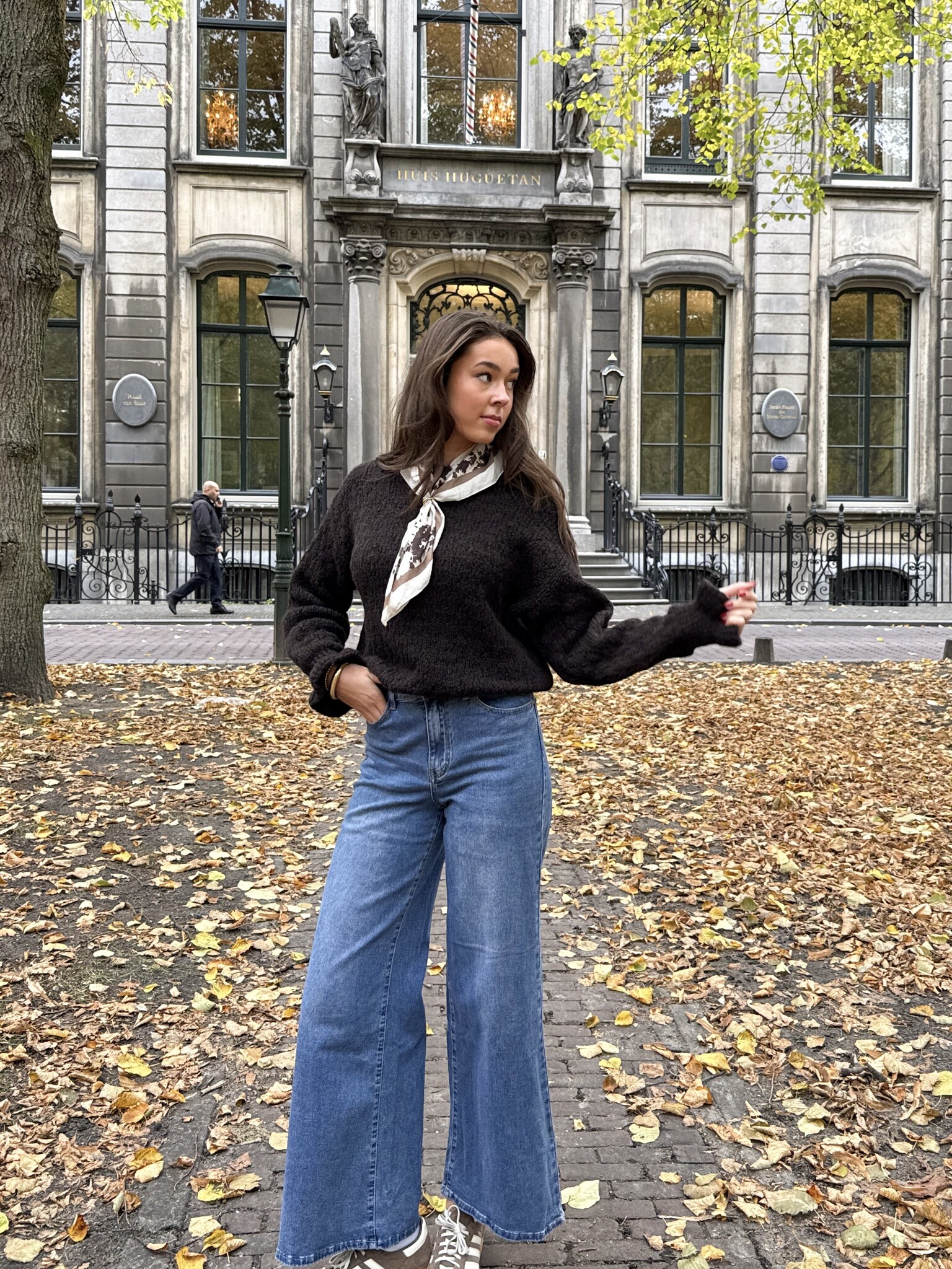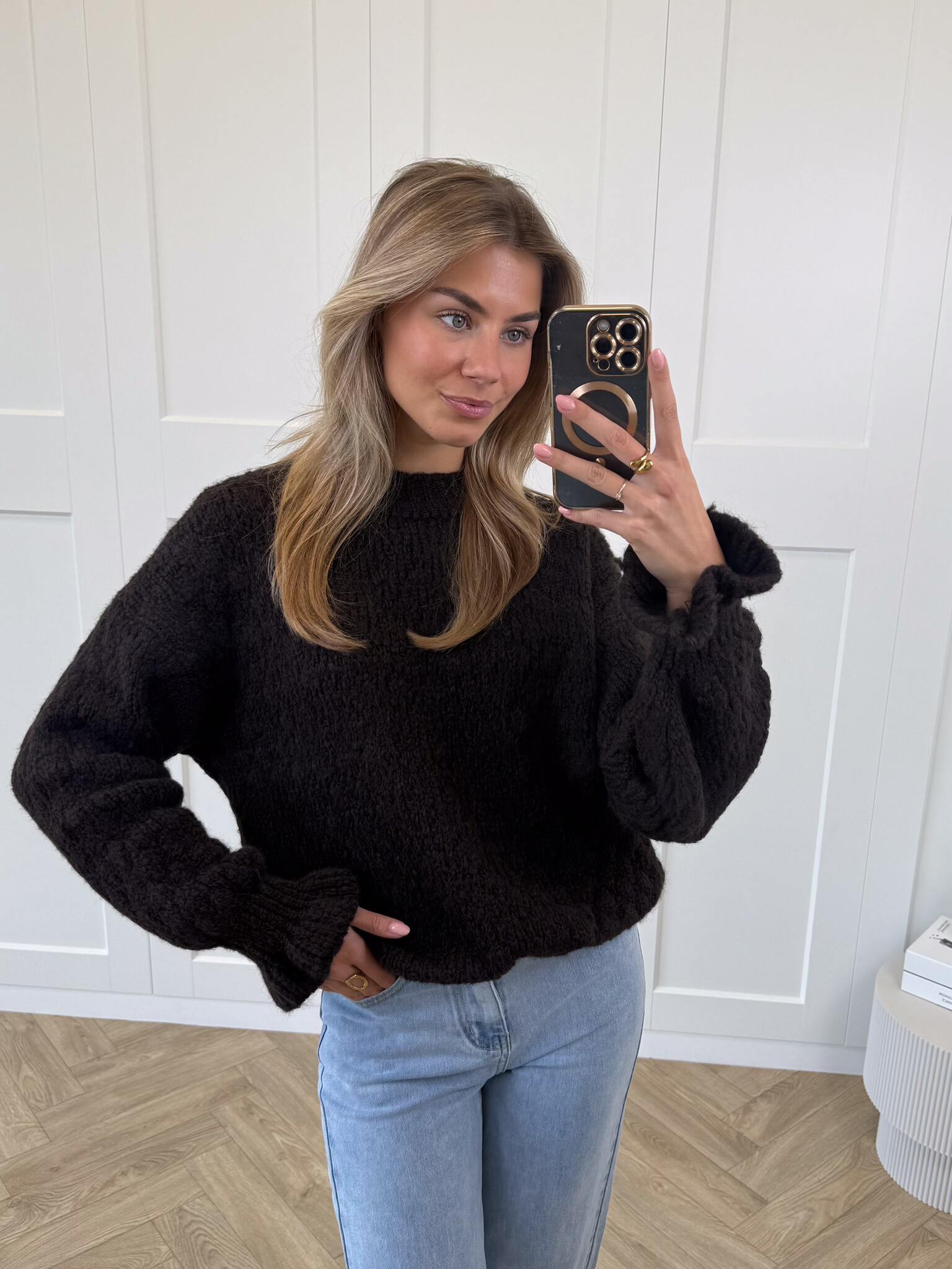 Deze bruine wollen trui is hét item dat je wilt dragen zodra het kouder wordt. De zachte trui voelt heerlijk warm aan en geeft je direct dat cozy gevoel. De relaxte fit zorgt voor een nonchalante, maar toch stijlvolle uitstraling. De bruine tint is tijdloos en makkelijk de combineren met een leuke jeans of een leuk rokje. De trui heeft een subtiele structuur die hem net dat beetje extra geeft. Kortom, alles wat je zoekt in een perfecte trui!