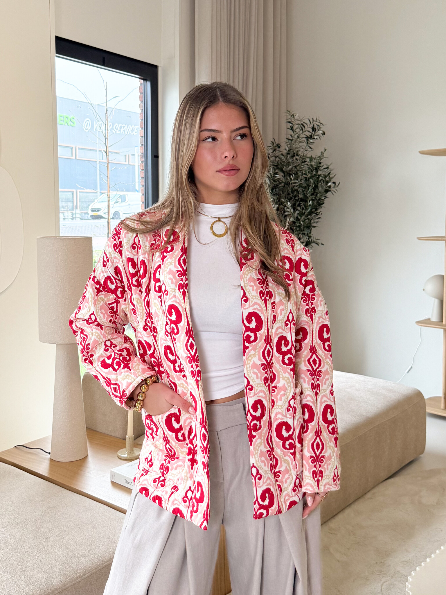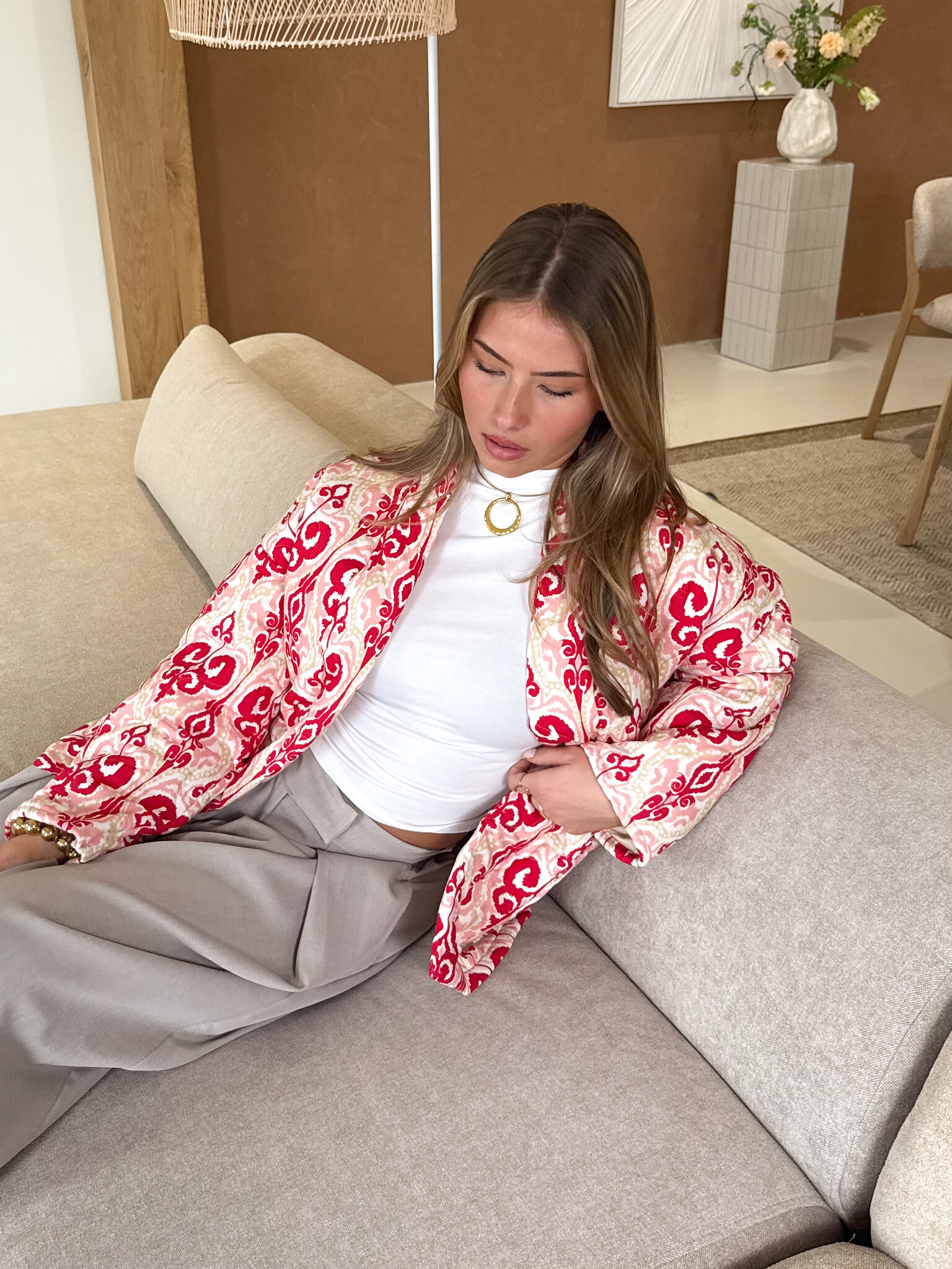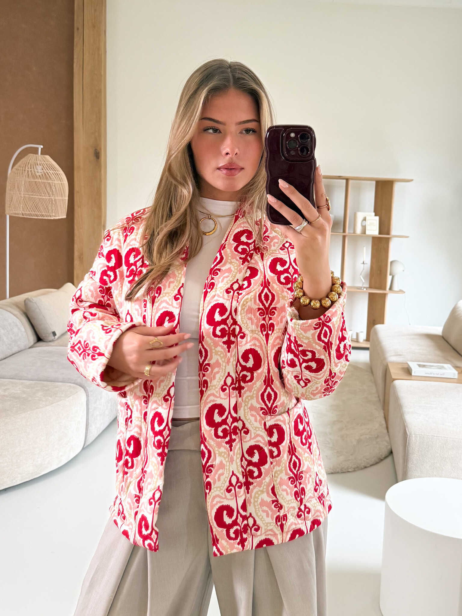 Dit jasje is het helemaal! Deze jas heeft een mooie patroon die je outfit helemaal opvrolijkt! De jacket heeft zakken aan beide kanten en valt lekker soepel.