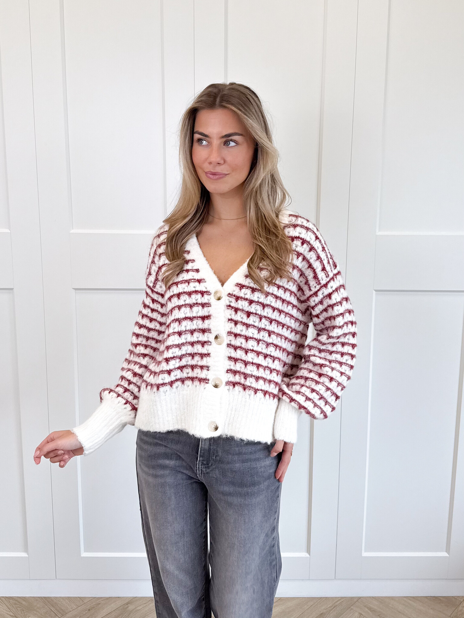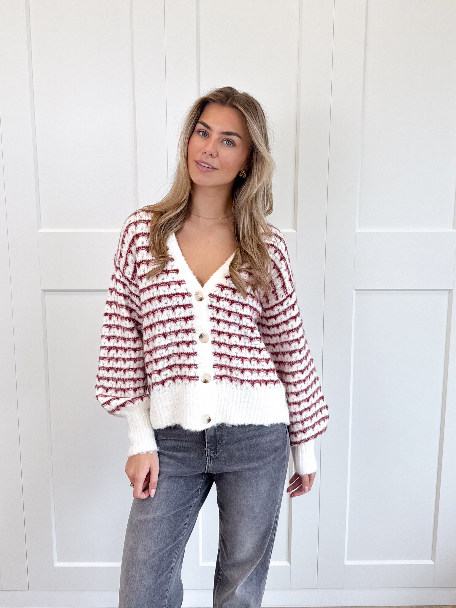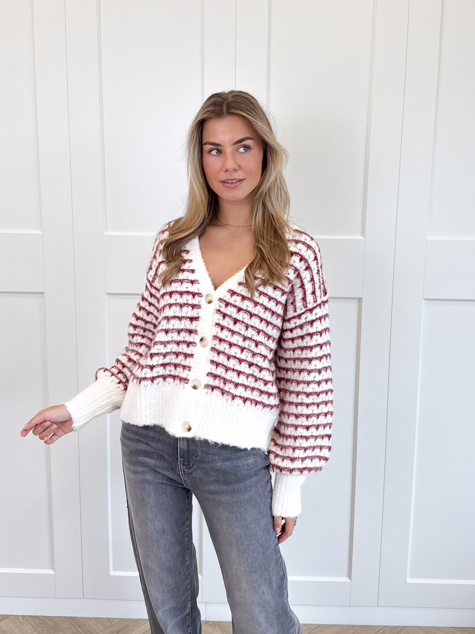 Dit rood-wit gestreepte vestje is een echte musthave voor meiden die houden van een speelse en stijlvolle look. De wolmix stof voelt heerlijk zacht aan en houdt je comfortabel warm tijdens koelere dagen. De subtiele glitterdraad geeft het vest een charmante glans, terwijl de V-hals en de knoopsluiting zorgen voor een vrouwelijke touch. Dankzij de stretchy stof sluit het vest mooi aan en beweeg je er makkelijk in. Perfect te combineren met een jeans voor een casual dag of met een rok voor een meer geklede outfit. Met zijn opvallende kleuren en speelse details is dit vestje een echte eyecatcher in je garderobe. Comfy, chic en helemaal on-trend.