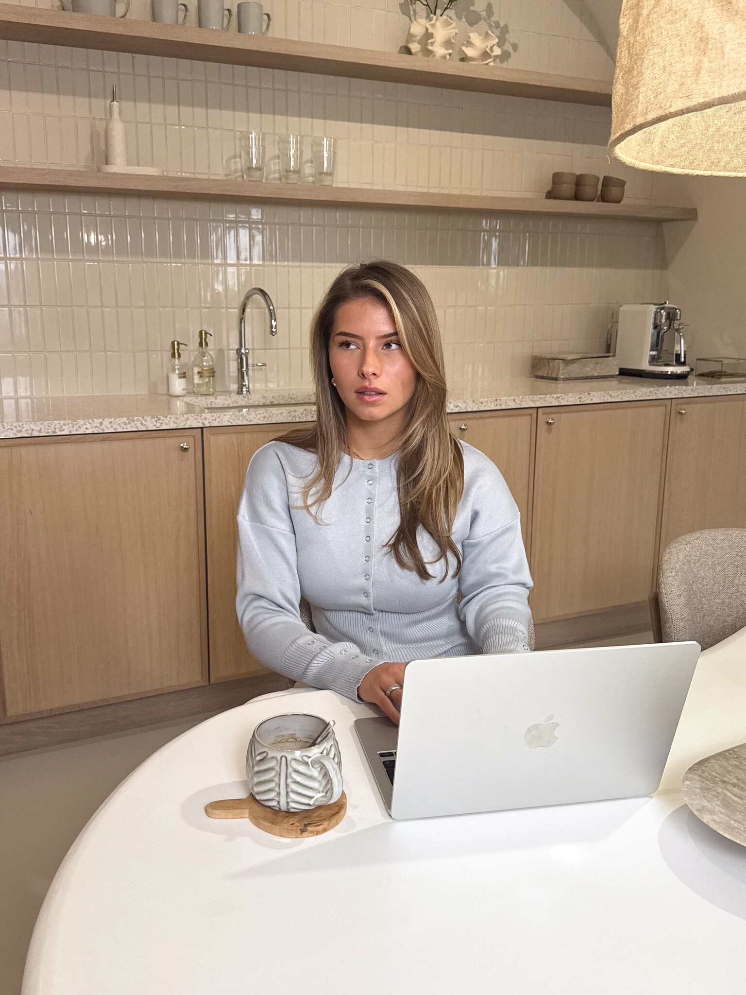 Dit vestje is zo’n item dat je altijd uit de kast blijft pakken. De getailleerde pasvorm sluit mooi aan en benadrukt je silhouet op een subtiele, vrouwelijke manier. Dankzij de lange mouwen is het perfect voor elk seizoen en ideaal om los te dragen of als laagje over een top. De drukknoopsluiting aan de voorkant zorgt voor een clean en moderne look en maakt het makkelijk om zelf te bepalen hoe je ’m draagt. De stof voelt comfortabel aan en beweegt fijn mee, waardoor het vestje niet alleen stylish maar ook super draagbaar is. Combineer met een jeans voor een casual vibe of draag ‘m met een pantalon voor een meer polished look.