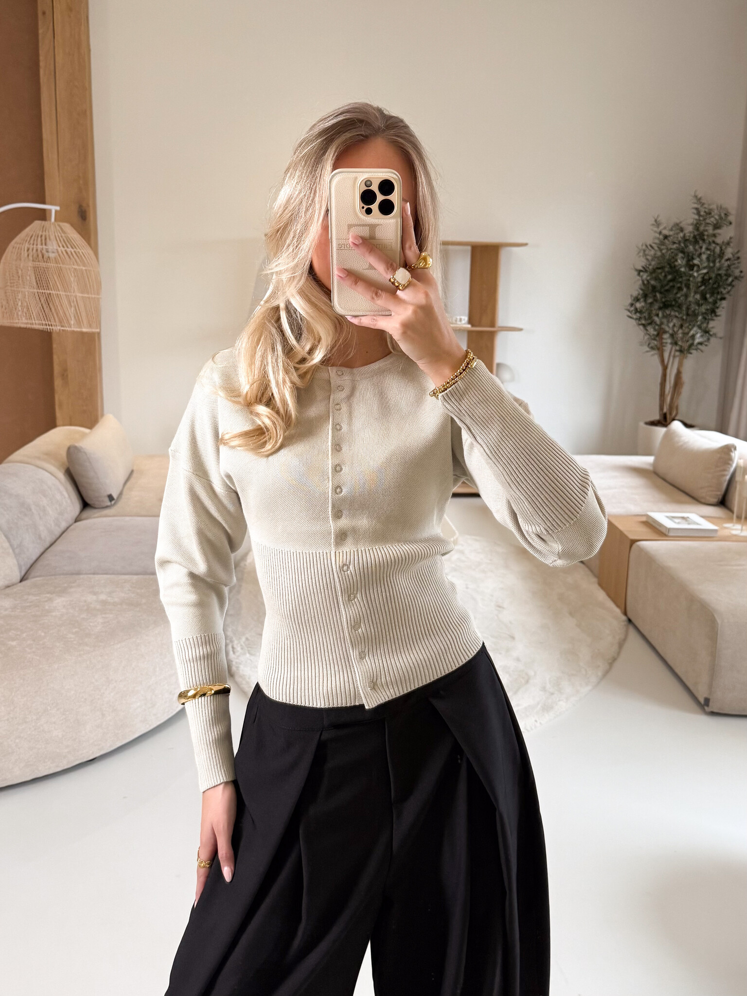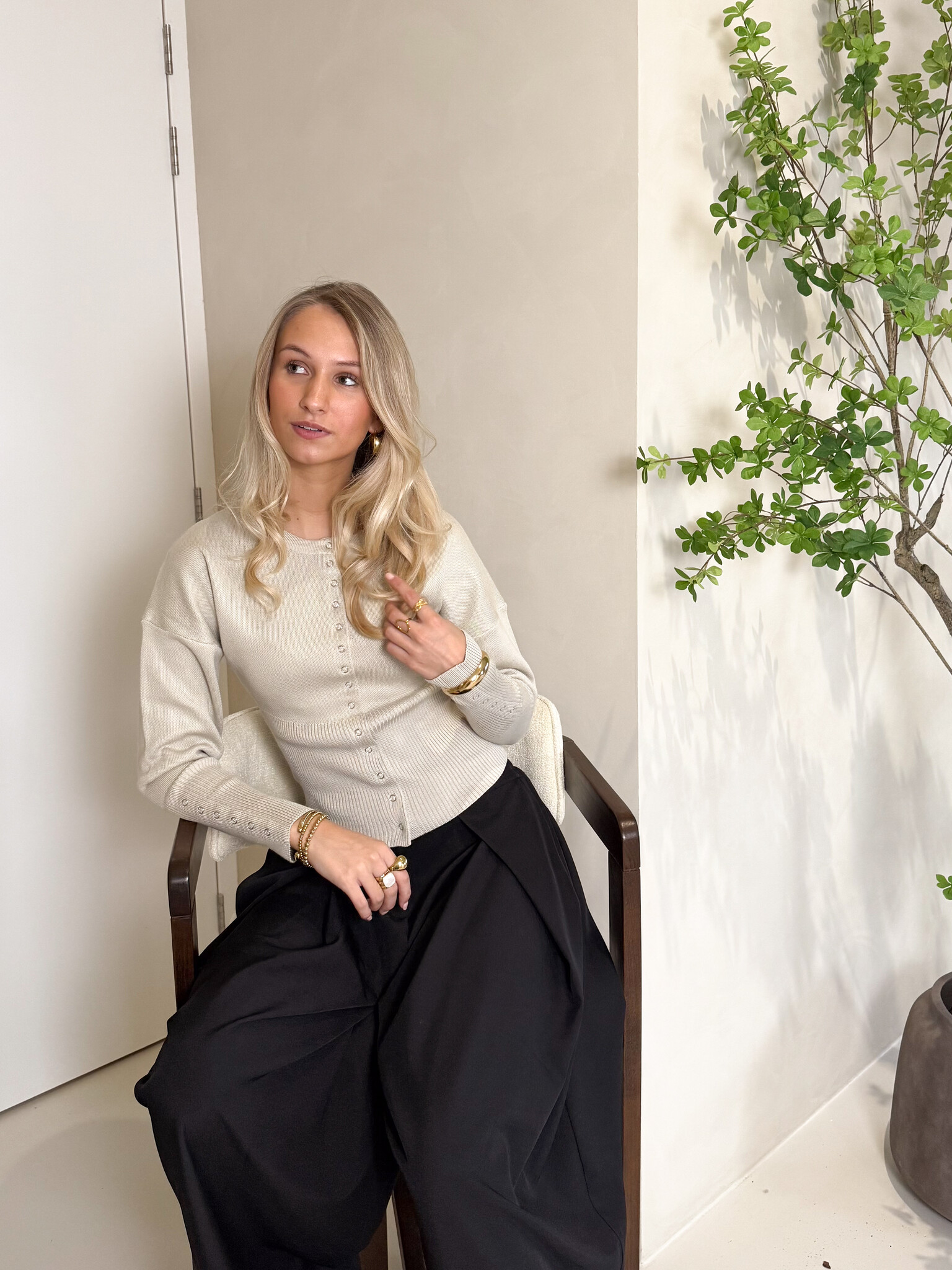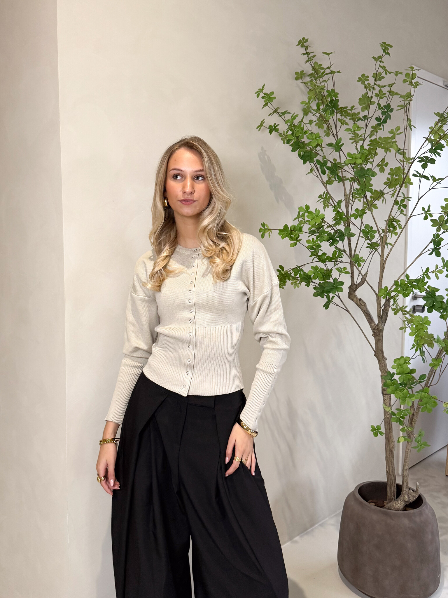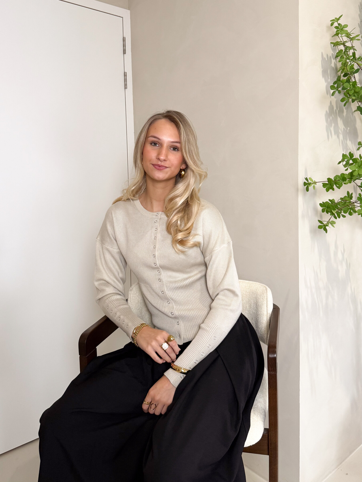 Dit vestje is zo’n item dat je altijd uit de kast blijft pakken. De getailleerde pasvorm sluit mooi aan en benadrukt je silhouet op een subtiele, vrouwelijke manier. Dankzij de lange mouwen is het perfect voor elk seizoen en ideaal om los te dragen of als laagje over een top. De drukknoopsluiting aan de voorkant zorgt voor een clean en moderne look en maakt het makkelijk om zelf te bepalen hoe je ’m draagt. De stof voelt comfortabel aan en beweegt fijn mee, waardoor het vestje niet alleen stylish maar ook super draagbaar is. Combineer met een jeans voor een casual vibe of draag ‘m met een pantalon voor een meer polished look.
