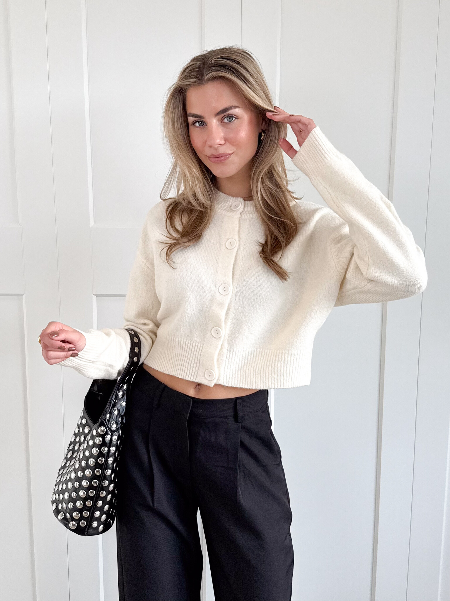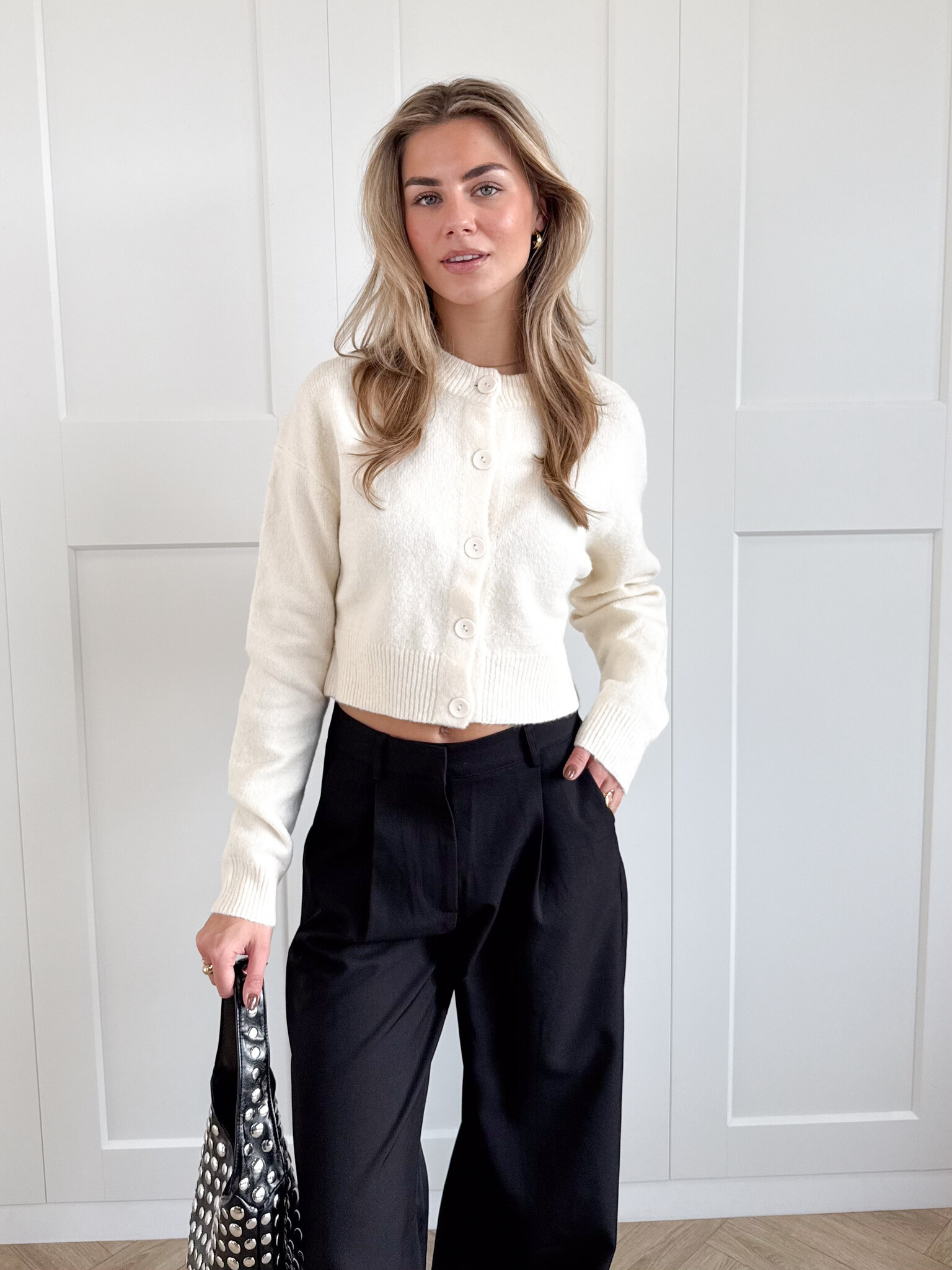 Dit basic wollen vestje is een echte must-have voor het seizoen. De zachte stof voelt heerlijk comfortabel aan en houdt je lekker warm, zonder zwaar te zijn. De knopen aan de voorkant zorgen voor een stijlvolle, vrouwelijke touch. Dankzij het tijdloze design kun je dit vestje eindeloos combineren, draag het open over een blouse of basic top voor een casual outfit, of dichtgeknoopt op een pantalon voor een chique look. De subtiele structuur en warme uitstraling maken het perfect voor elke gelegenheid, van een relaxte dag thuis tot een dag in de stad. Comfortabel, veelzijdig en helemaal in stijl.