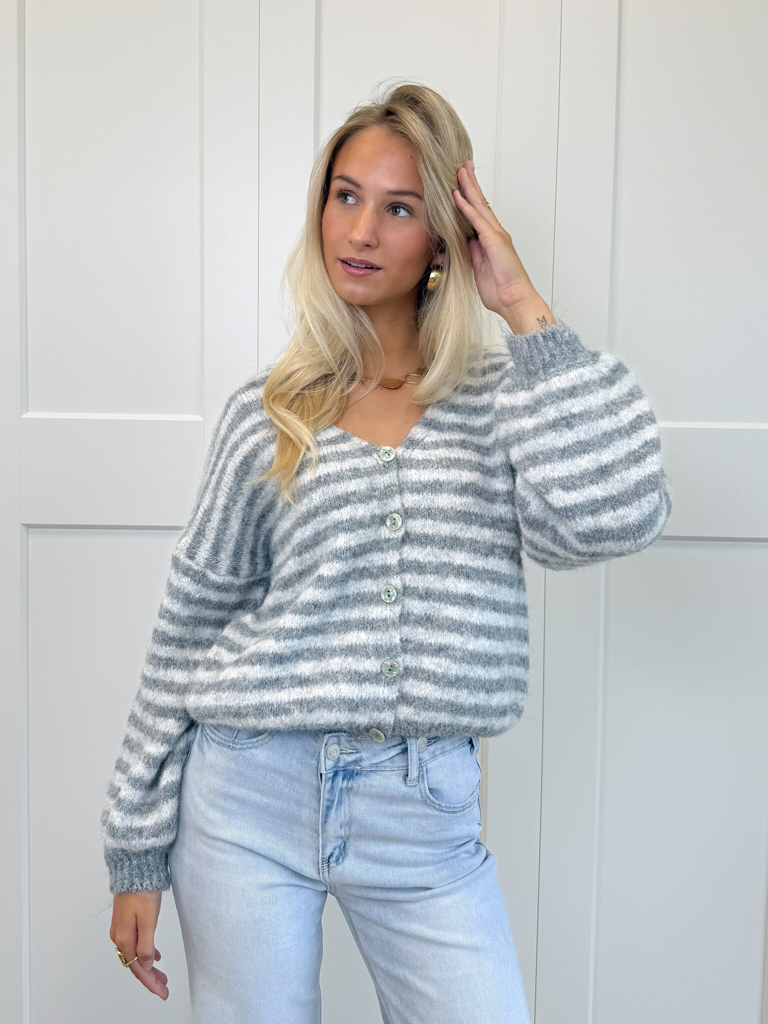 Dit vestje combineert comfort met een touch of preppy. De zachte stof valt soepel. Het kraagje en de knoopjes aan de voorkant geven een klassieke uitstraling, terwijl de beige basis met rode strepen zorgt voor een frisse en opvallende look. Dankzij het one size model draag je hem relaxed en veelzijdig. perfect over een basic tee of als top op een high-waist jeans.