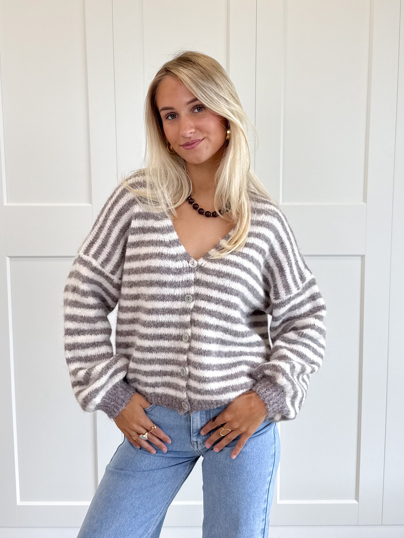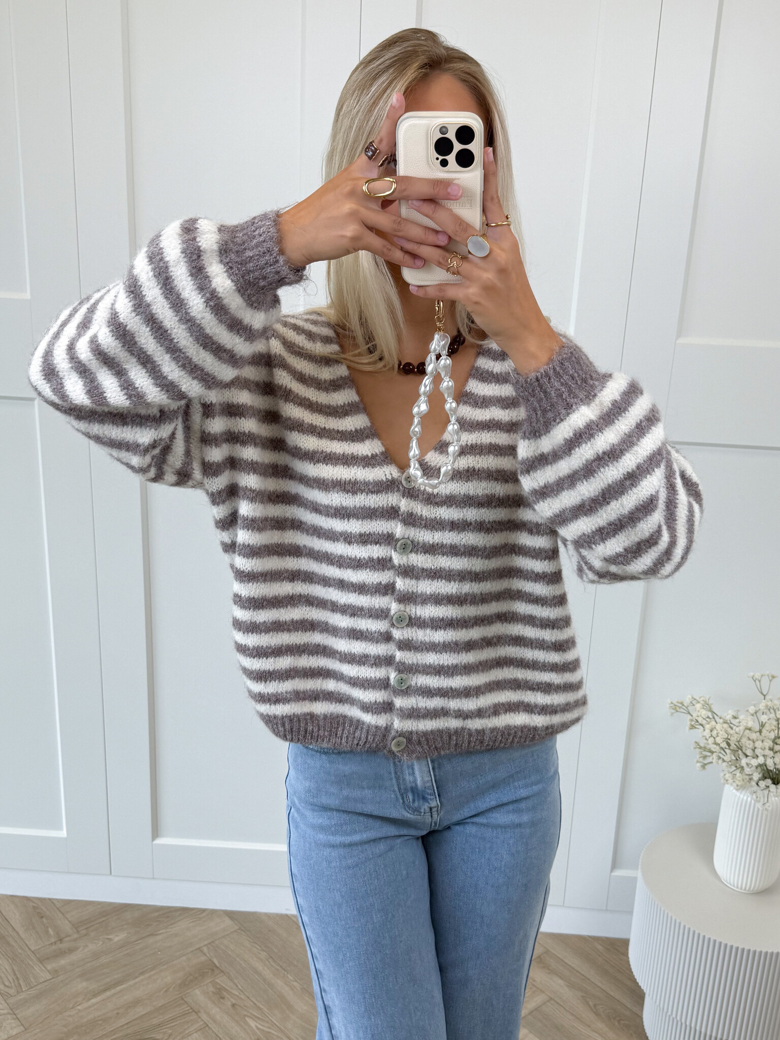 Dit vestje combineert comfort met een touch of preppy. De zachte stof valt soepel. Het kraagje en de knoopjes aan de voorkant geven een klassieke uitstraling, terwijl de beige basis met rode strepen zorgt voor een frisse en opvallende look. Dankzij het one size model draag je hem relaxed en veelzijdig. perfect over een basic tee of als top op een high-waist jeans.