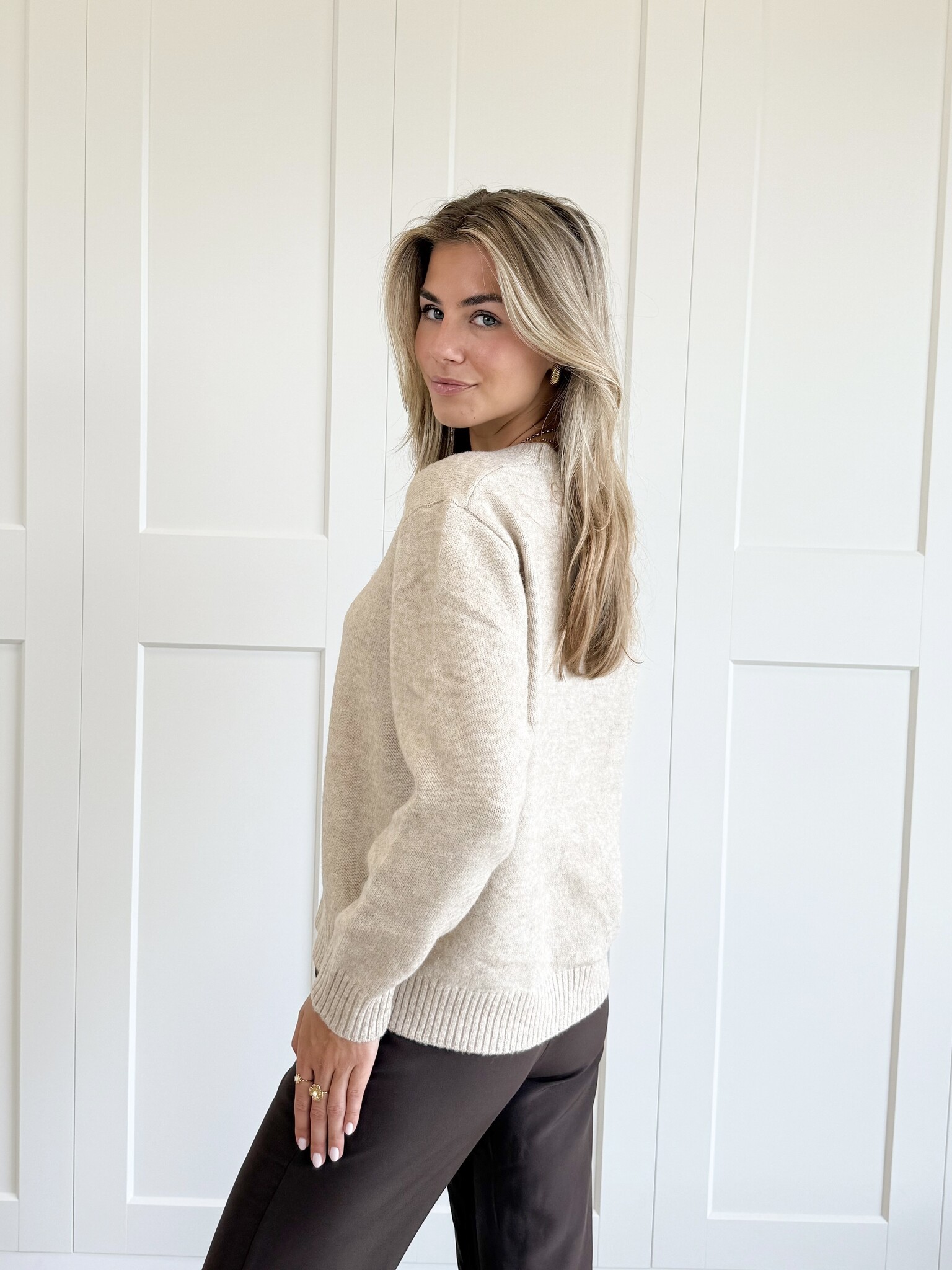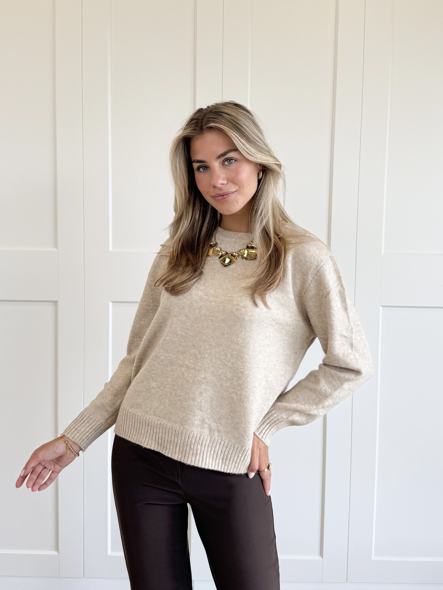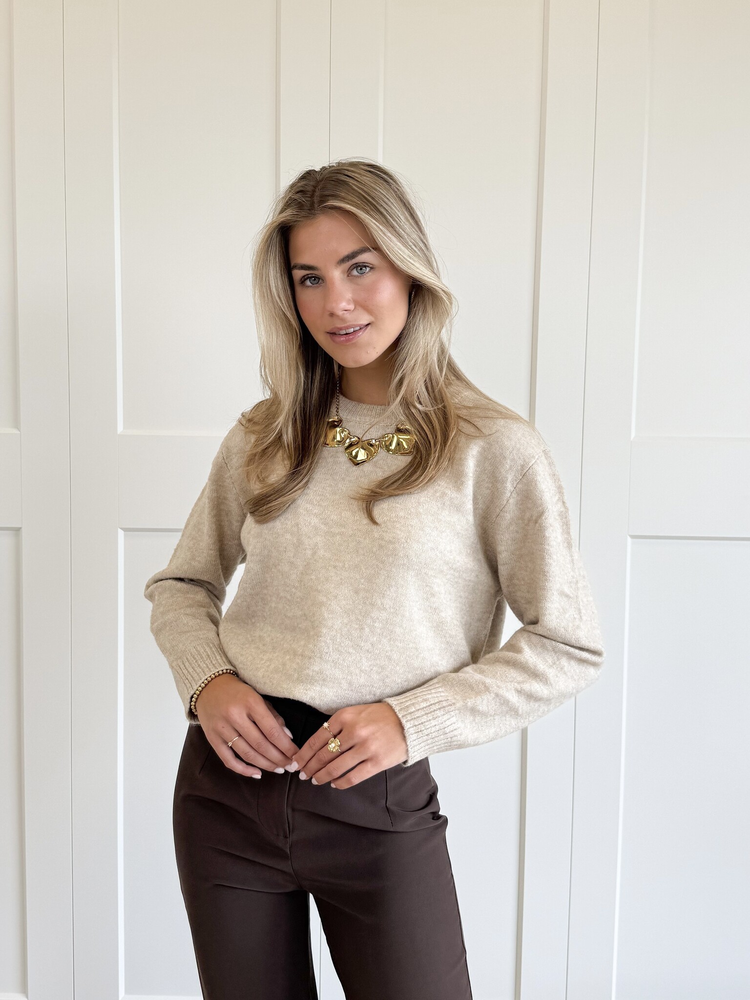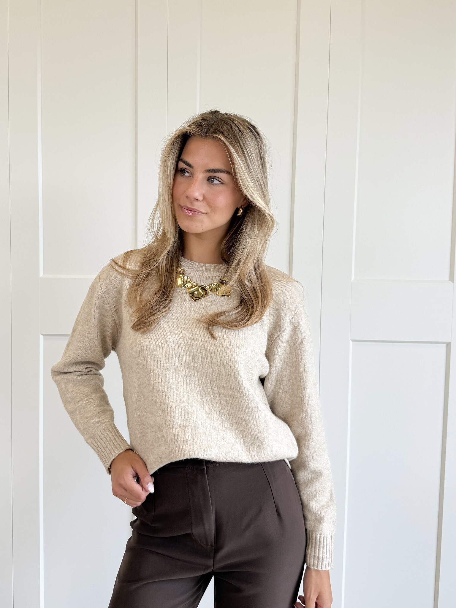 Warm, zacht en stijlvol. Deze beige wollen trui is een echte musthave voor het seizoen. De soepele stof voelt heerlijk comfortabel aan en de ronde kraag geeft hem een tijdloze uitstraling. Hij houdt je lekker warm, zonder te dik te zijn, waardoor hij ideaal is om los te dragen of te combineren met laagjes. Perfect op een jeans voor een casual look, of stijlvol met een pantalon en boots voor een meer geklede outfit.