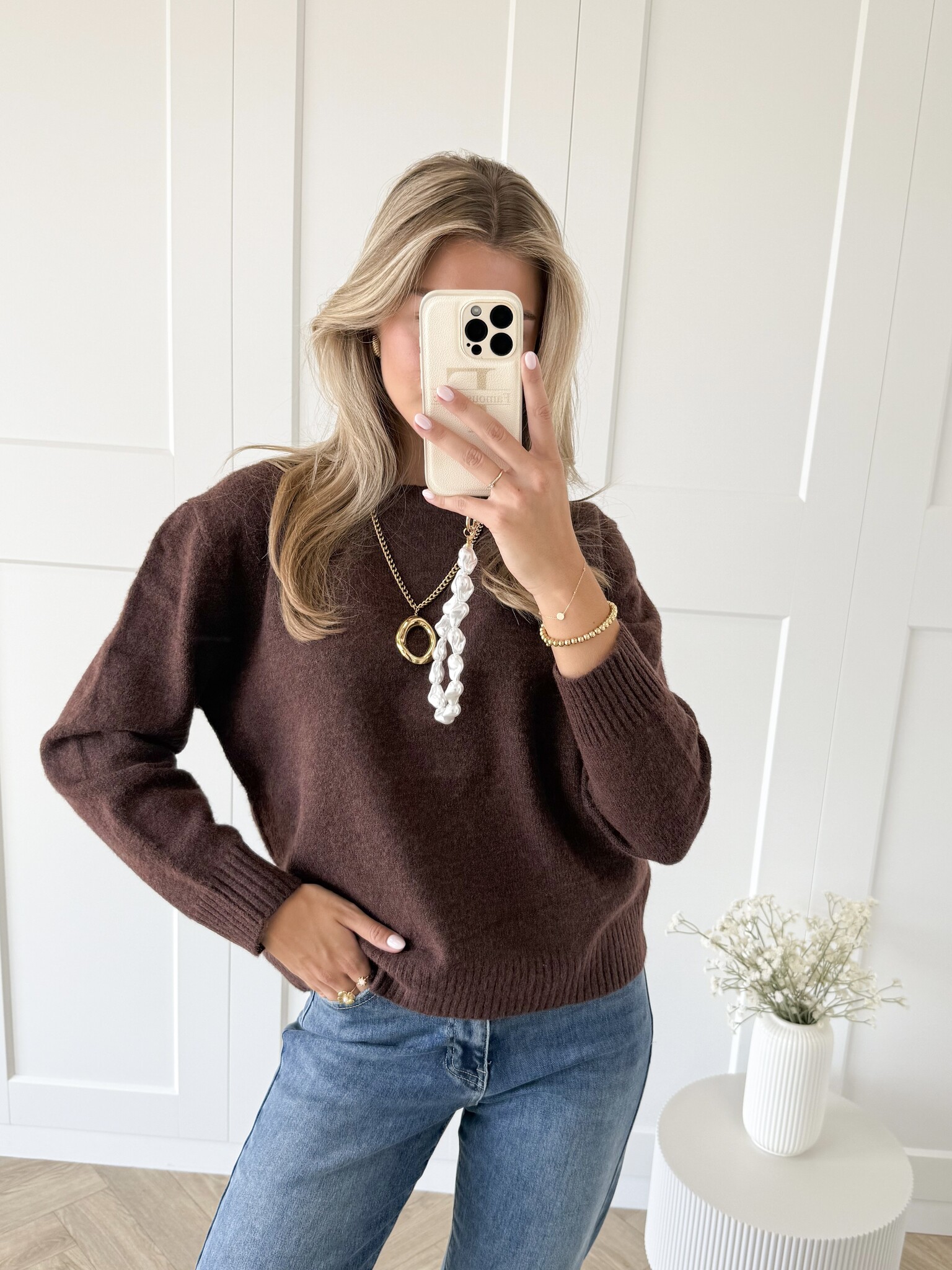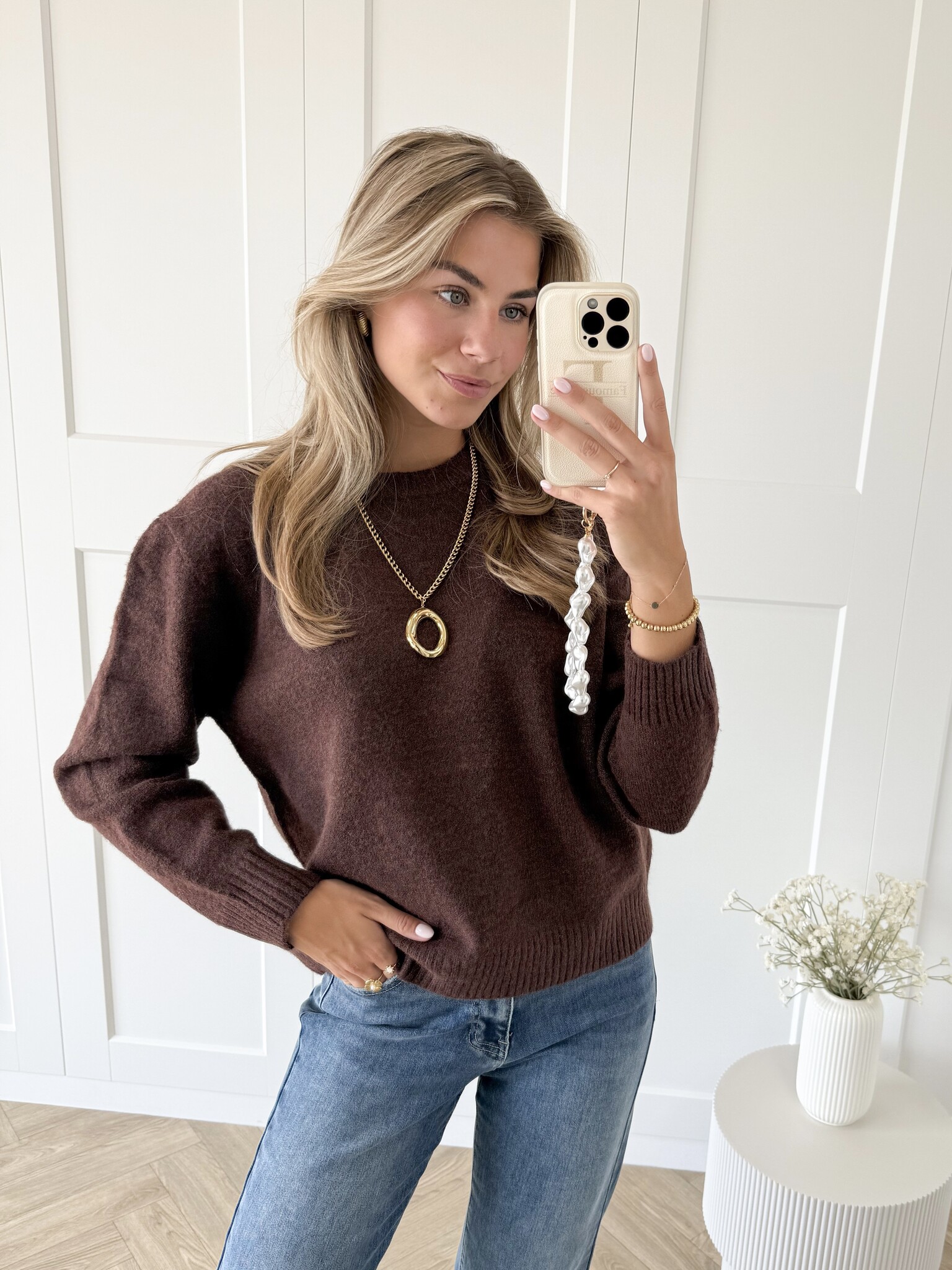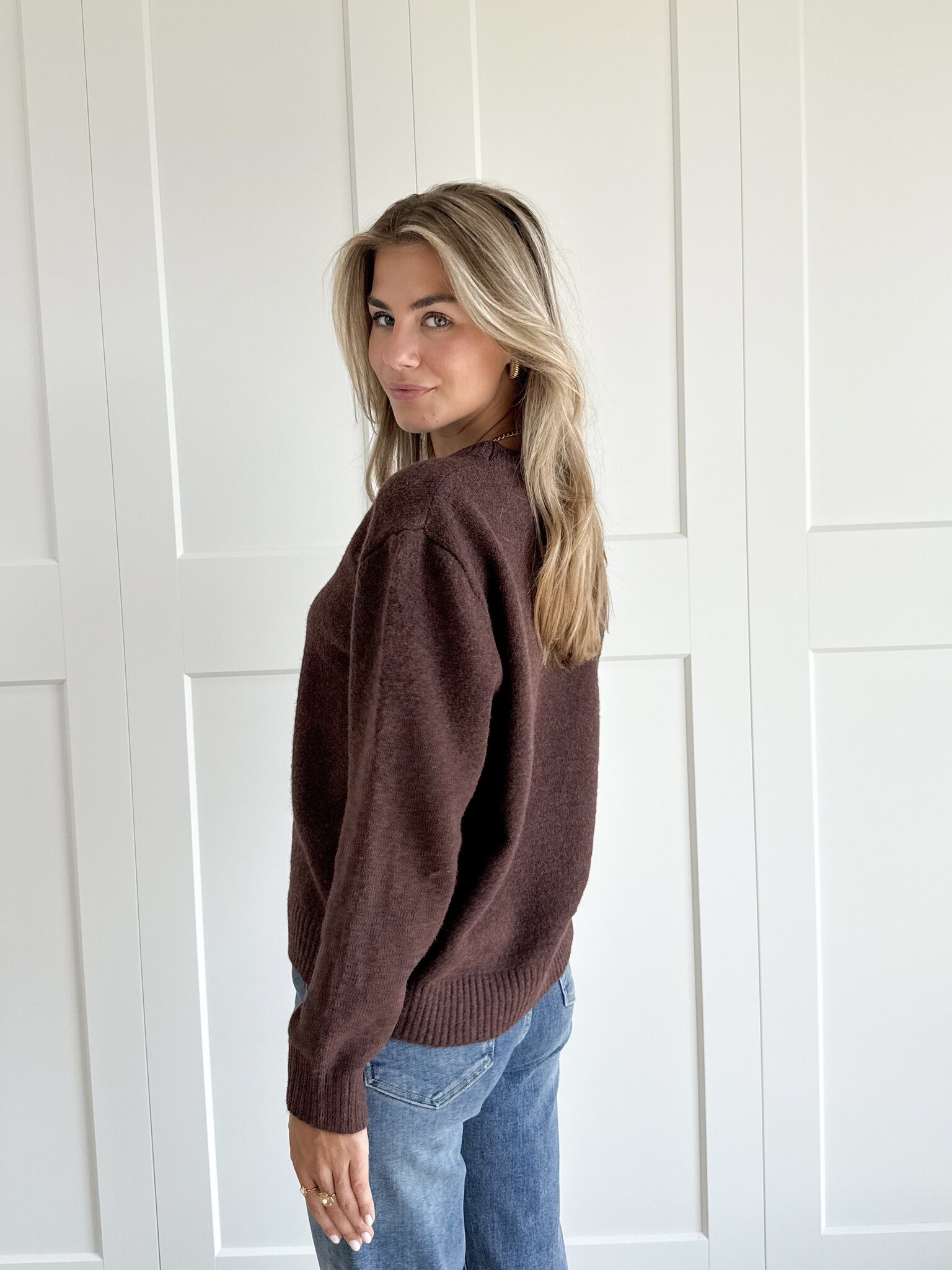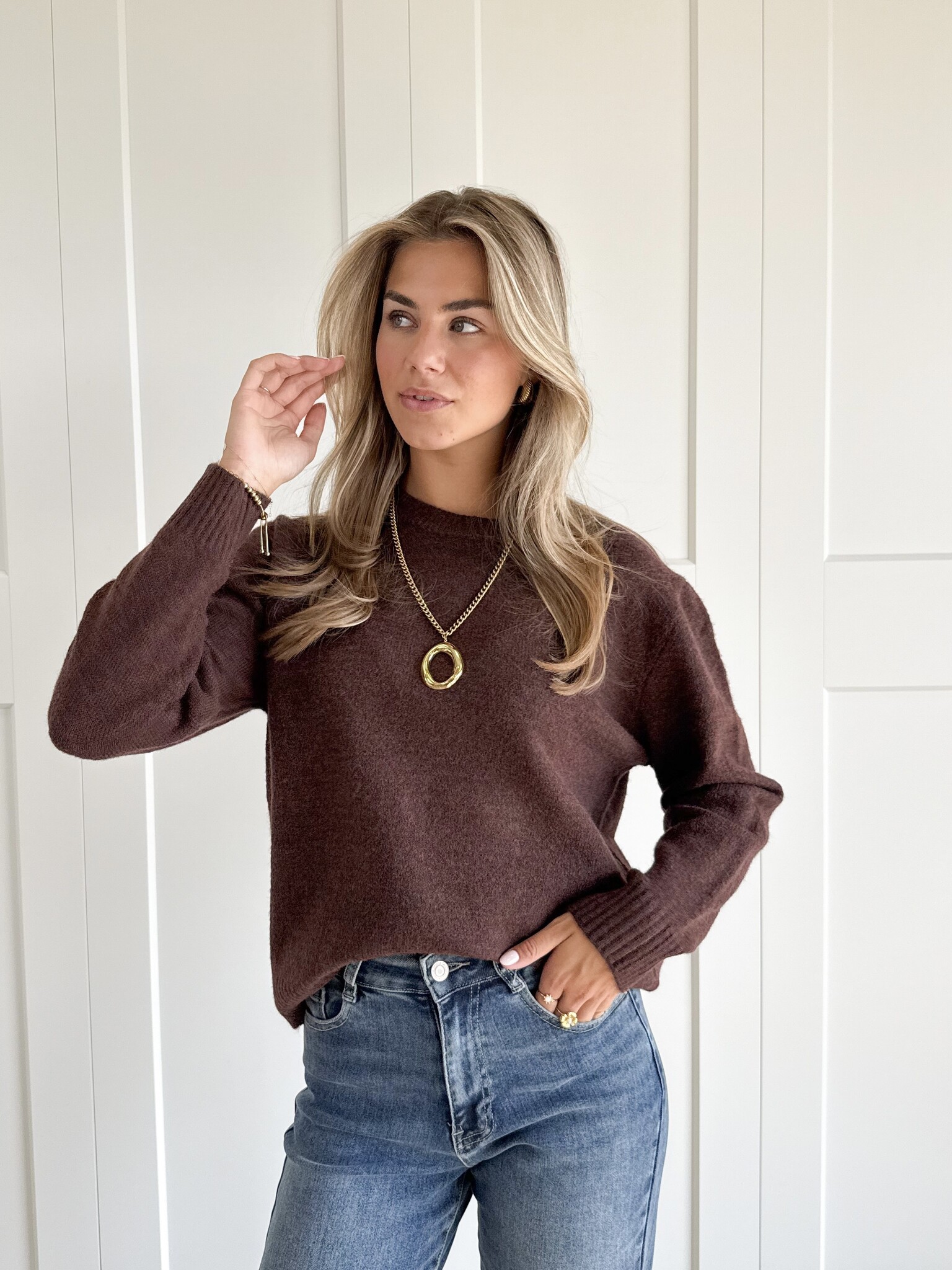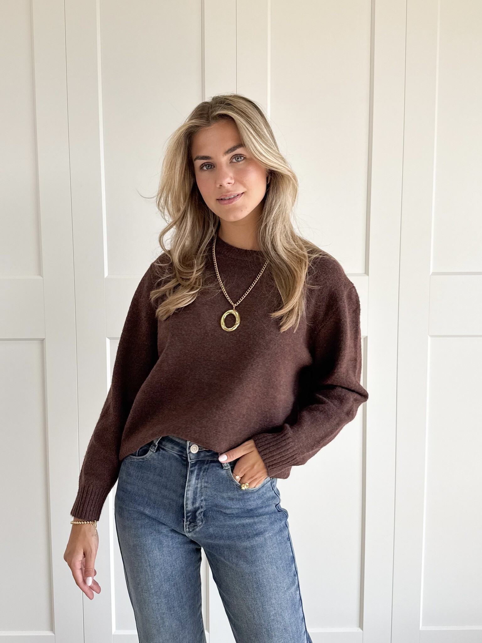 Warm, zacht en stijlvol. Deze donkerbruine wollen trui is een echte musthave voor het seizoen. De soepele stof voelt heerlijk comfortabel aan en de ronde kraag geeft hem een tijdloze uitstraling. Hij houdt je lekker warm, zonder te dik te zijn, waardoor hij ideaal is om los te dragen of te combineren met laagjes. Perfect op een jeans voor een casual look, of stijlvol met een pantalon en boots voor een meer geklede outfit.