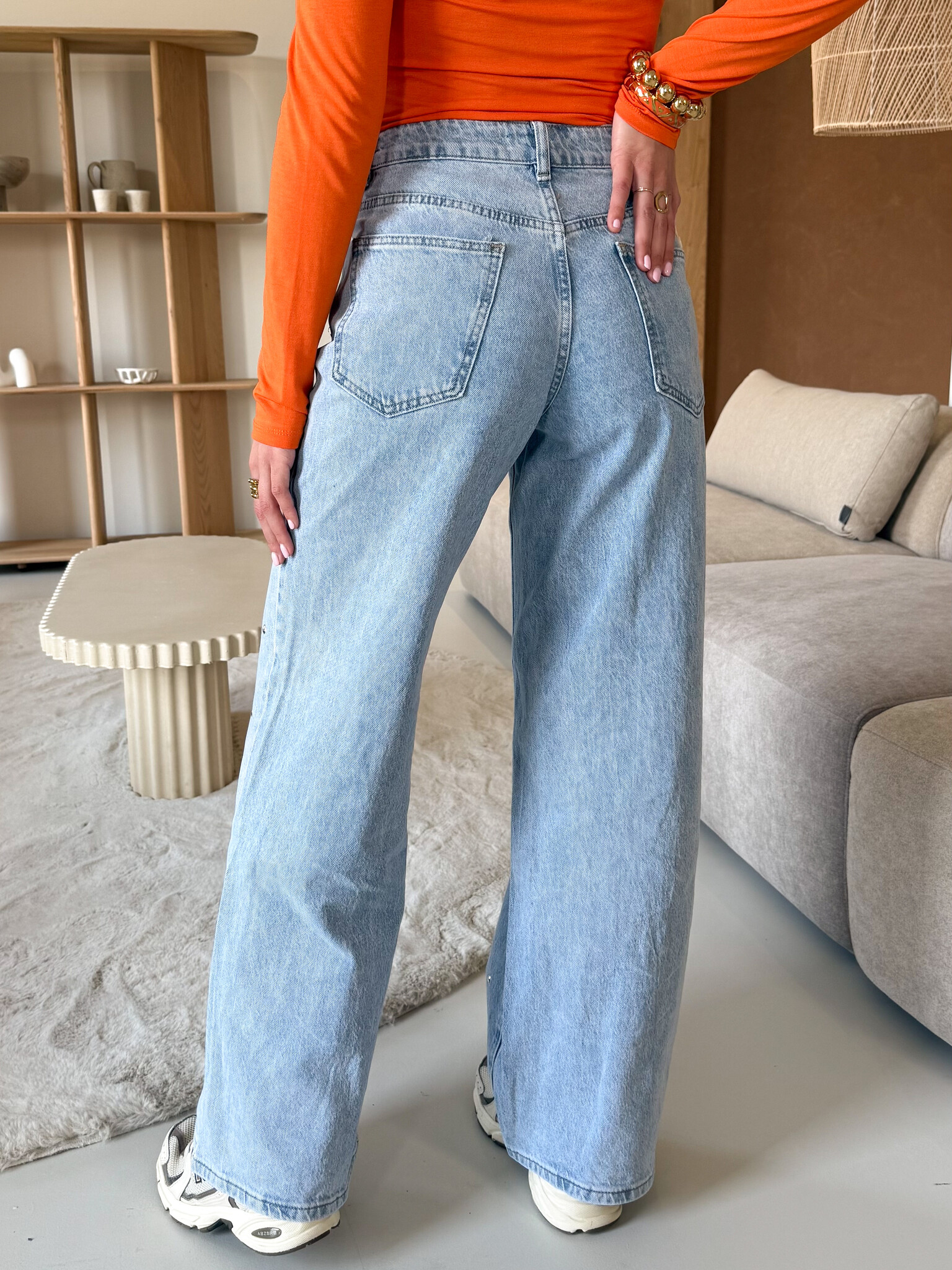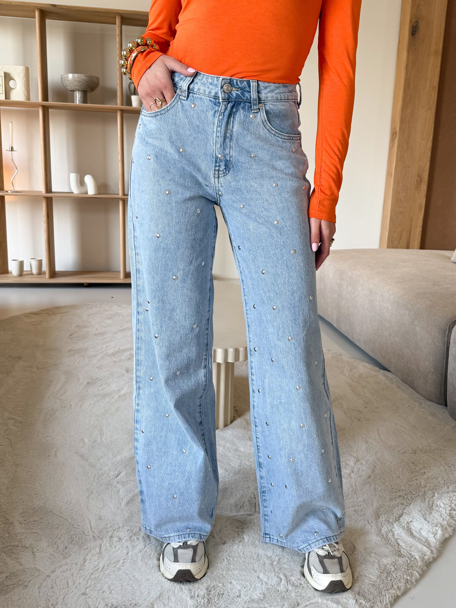 Deze jeans met zilveren studs aan de voorkant combineert een girly look met een edgy twist, waardoor hij perfect is voor zowel casual als trendy outfits. De studs geven subtiele glans en maken van een basic jeans een opvallend fashion item. De pasvorm is comfortabel en flatteert je silhouet, terwijl de hoogwaardige denim stof zorgt voor een stevige maar soepele feel. Draag hem met een T-shirt en sneakers voor een casual dag in de stad, of combineer met een crop top en boots voor een stoere festival- of streetstyle look. Een musthave voor iedere girl die haar outfits een girly en edgy upgrade wil geven.