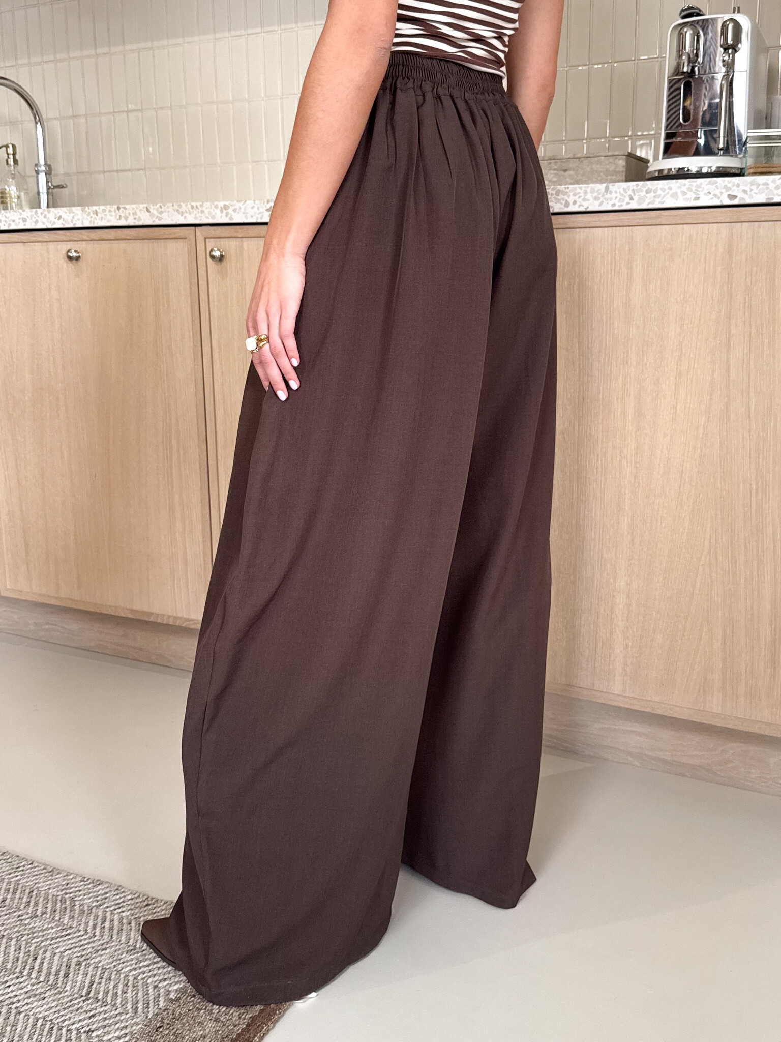Deze pantalon is een echte essential voor iedereen die houdt van stijl en comfort in één. De wide leg fit geeft een elegante, moderne uitstraling en zorgt ervoor dat de broek soepel en luxe valt. Door de nette plooi aan de voorkant krijgt de pantalon een chique look die zowel geschikt is voor werk, etentjes als casual chic dagen. De rits- en knoopsluiting zijn onzichtbaar weggewerkt voor een clean, minimalistisch effect. De taille heeft extra stretch, waardoor de broek perfect meebeweegt en de hele dag comfortabel blijft zitten. De zakken zijn subtiel verwerkt, zodat de pantalon praktisch blijft zonder in te leveren op stijl. Combineer met een blouse voor workwear, een body voor een avondje uit of een trui voor een effortless classy vibe.Deze pantalon is de ultieme mix van comfort, vrouwelijkheid en moderne elegantie.