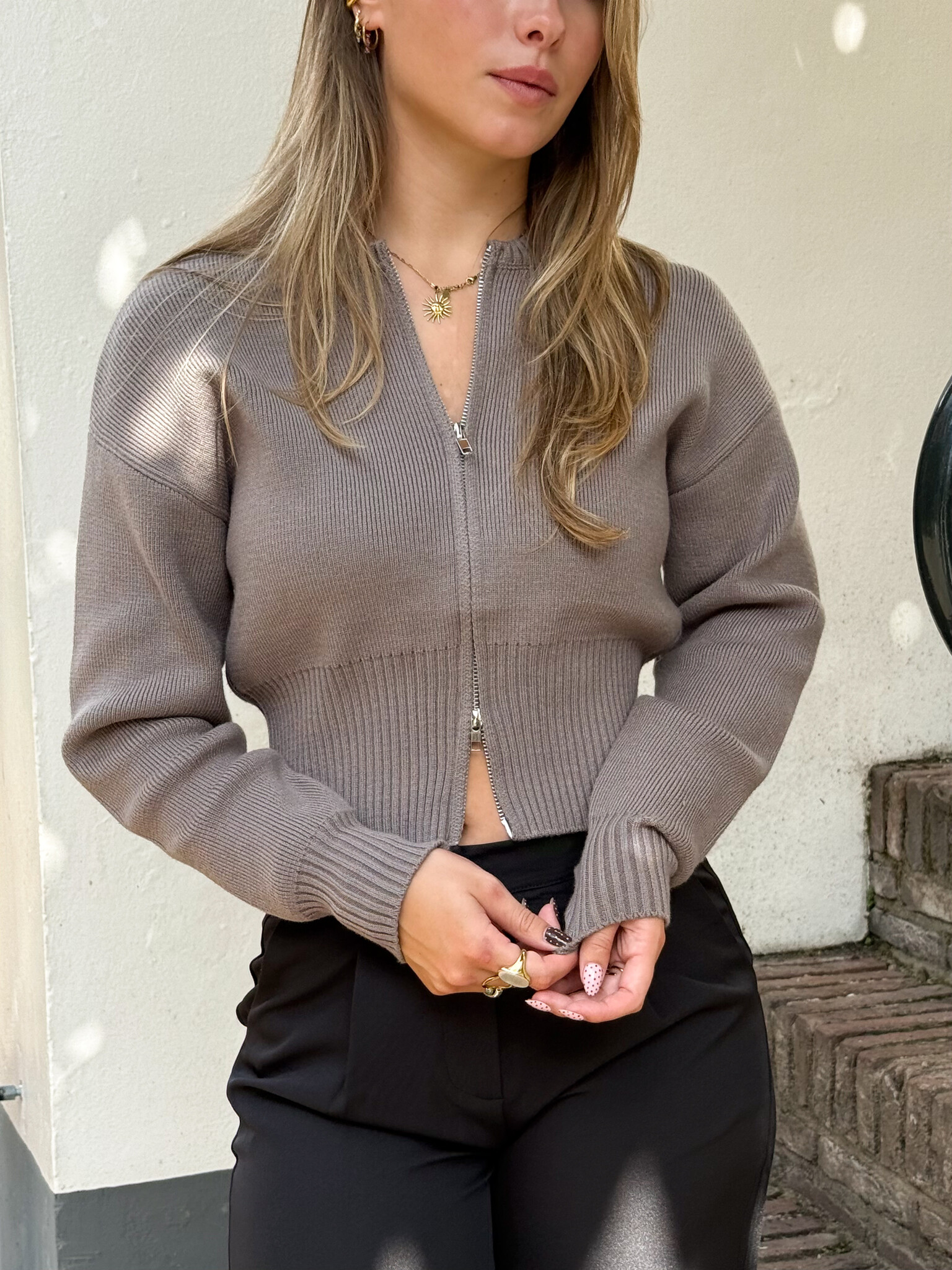 Dit vest is precies dat ene kledingstuk dat je kast compleet maakt: zacht, comfortabel en toch super stylish. De knitted stof voelt heerlijk aan op je huid en geeft je meteen dat cozy gevoel, zonder zwaar te zijn. Het unieke detail? De dubbele ritssluiting die je zowel van boven als onder open kunt dragen. Daarmee speel je gemakkelijk met je look en creëer je in no-time een andere vibe.